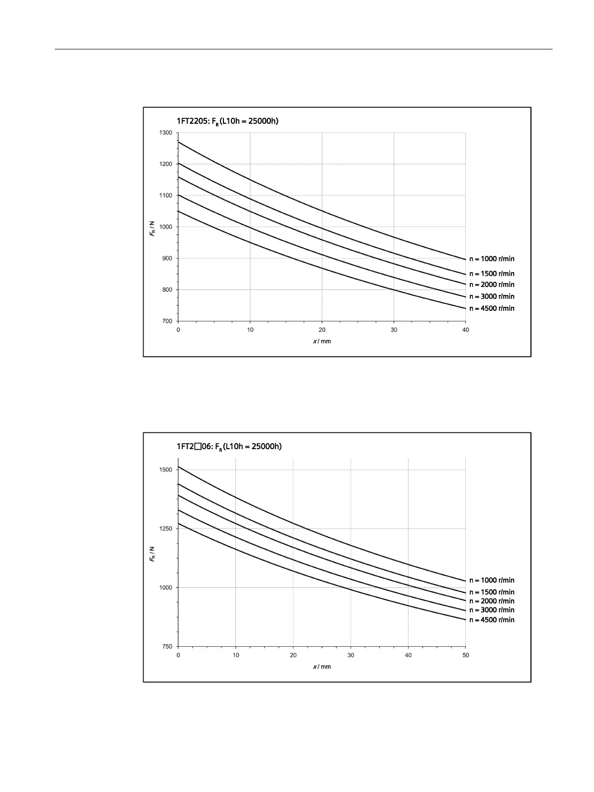 Figure 3-5 Maximum permissible radial force FR at a distance x from the flange for a nominal bearing