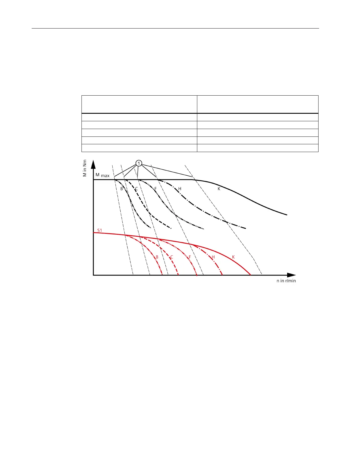Motors with a higher code letter for the winding permit a wider speed range in the S1 and