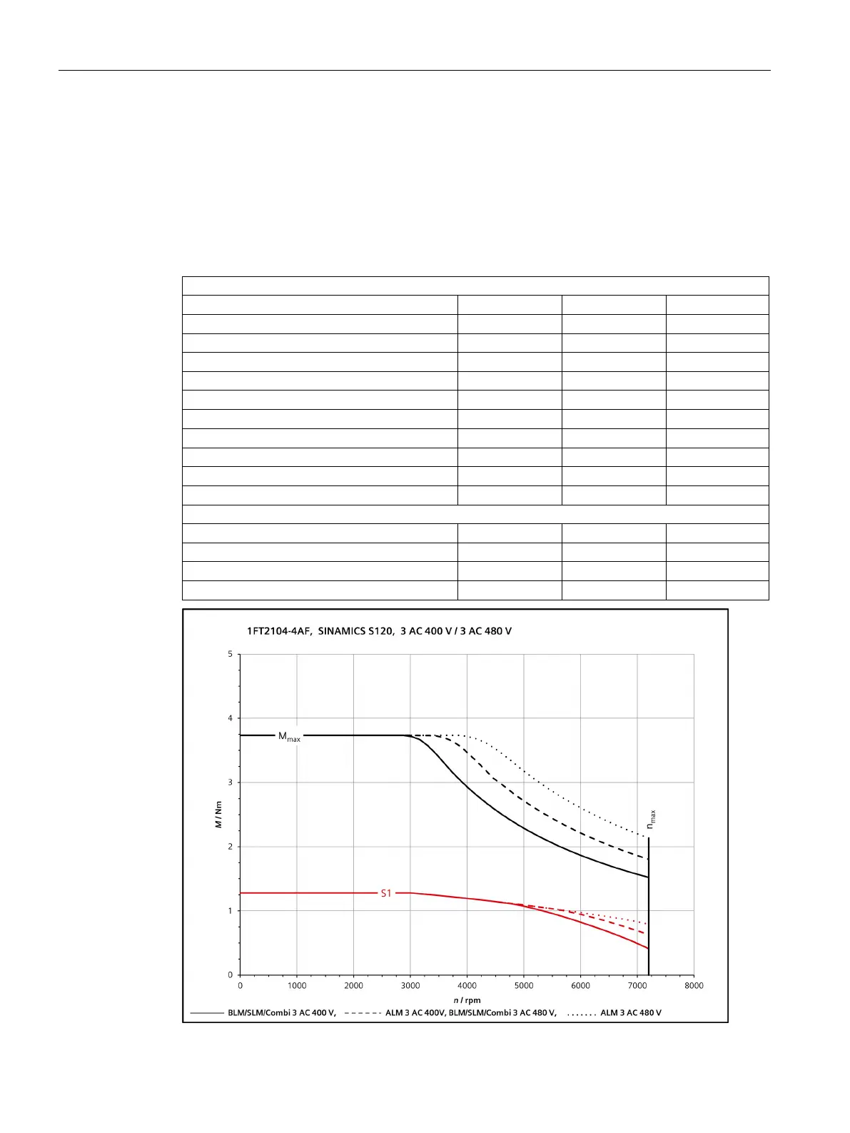 Rated data with S120, 3 AC 400 V / 3 AC 480 V