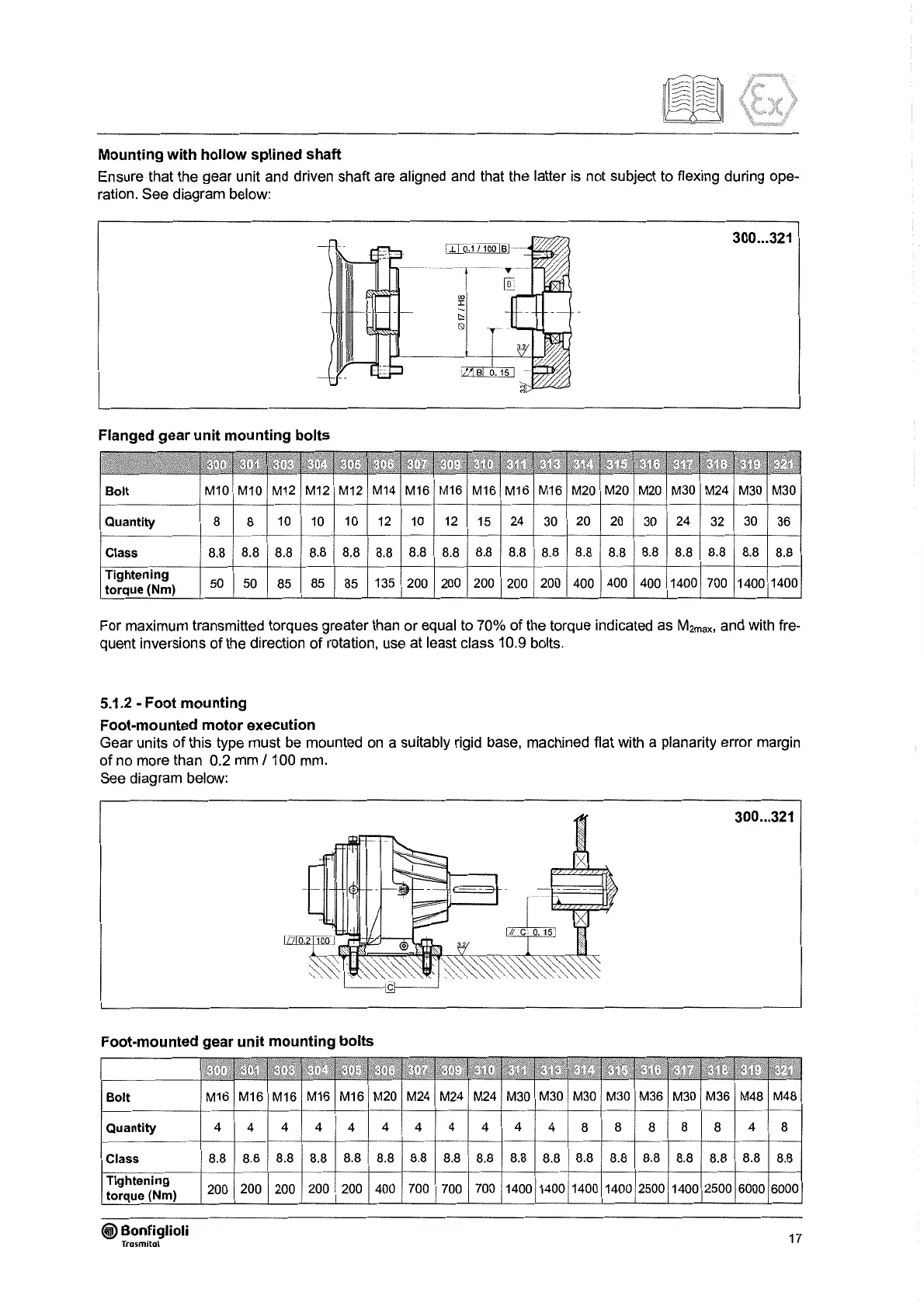 quent inversions of the direction of rotation, use at least class 10.9 bolts.
