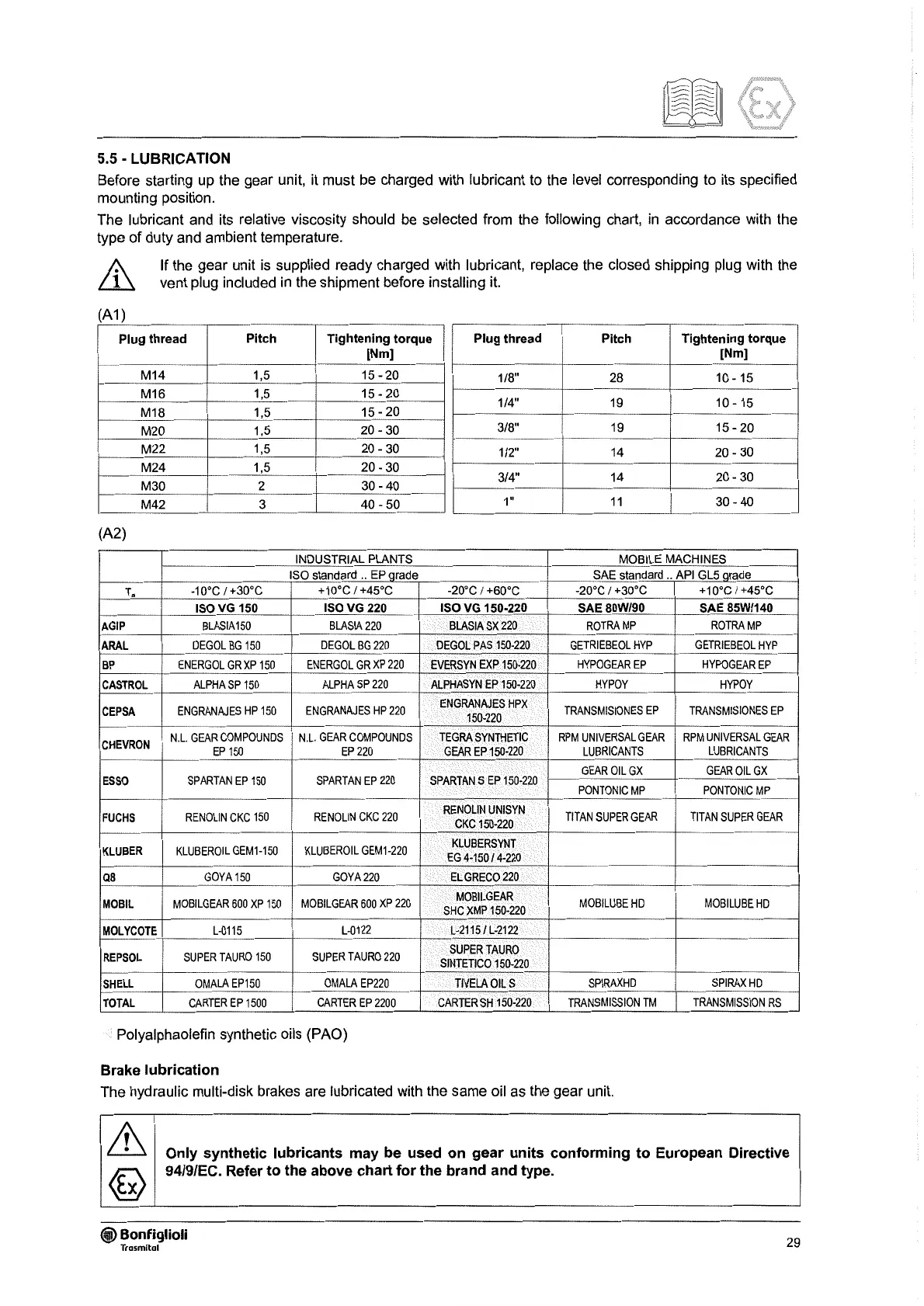 Befare starting up the gear unit, it must be charged with lubricant to the level corresponding to its specified
