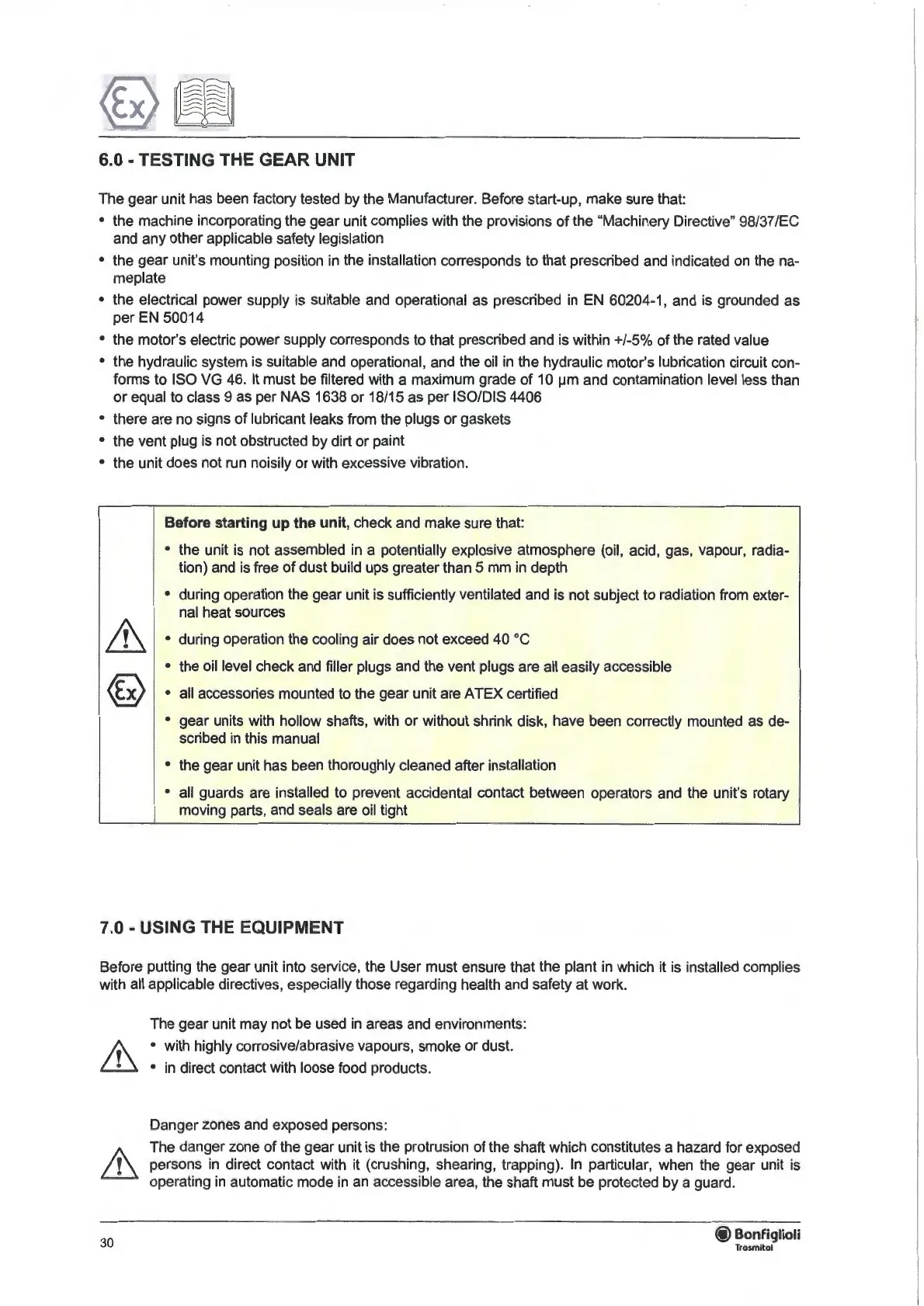 The gear unit has been factory tested by the Manufacturer. Befare start-up, make sure that: