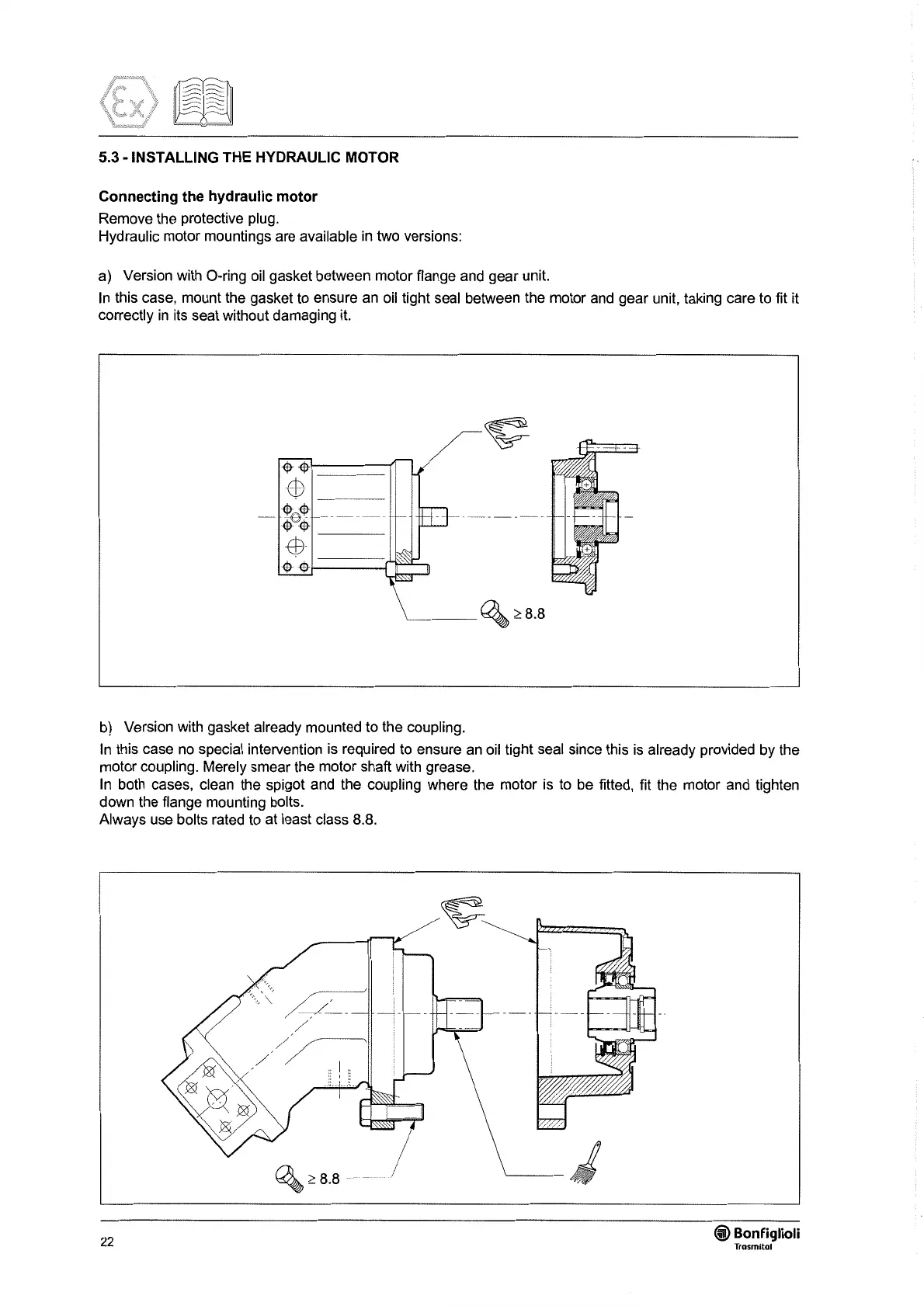 both cases, clean the spigot and the coupling where the motor is to be fitted, fit the motor and tighten