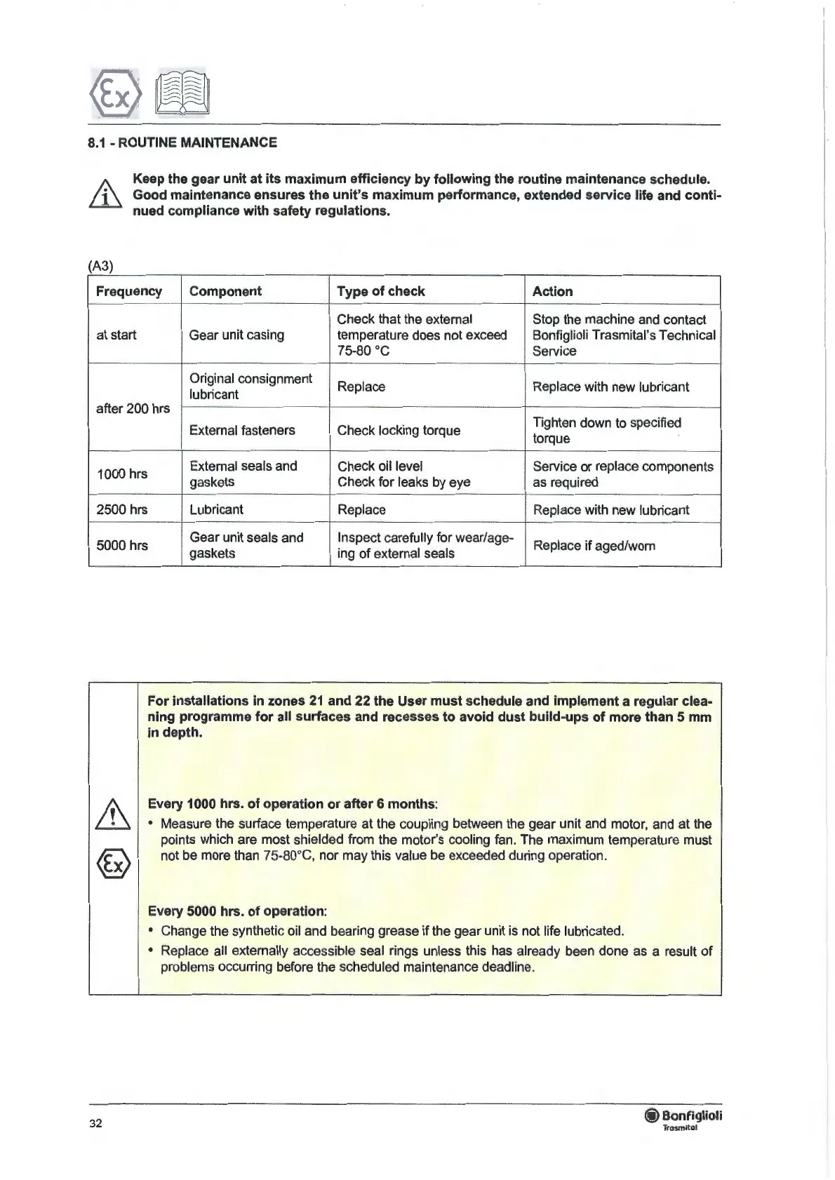 temperature does not exceed Bonfiglioli Trasmital's Technical