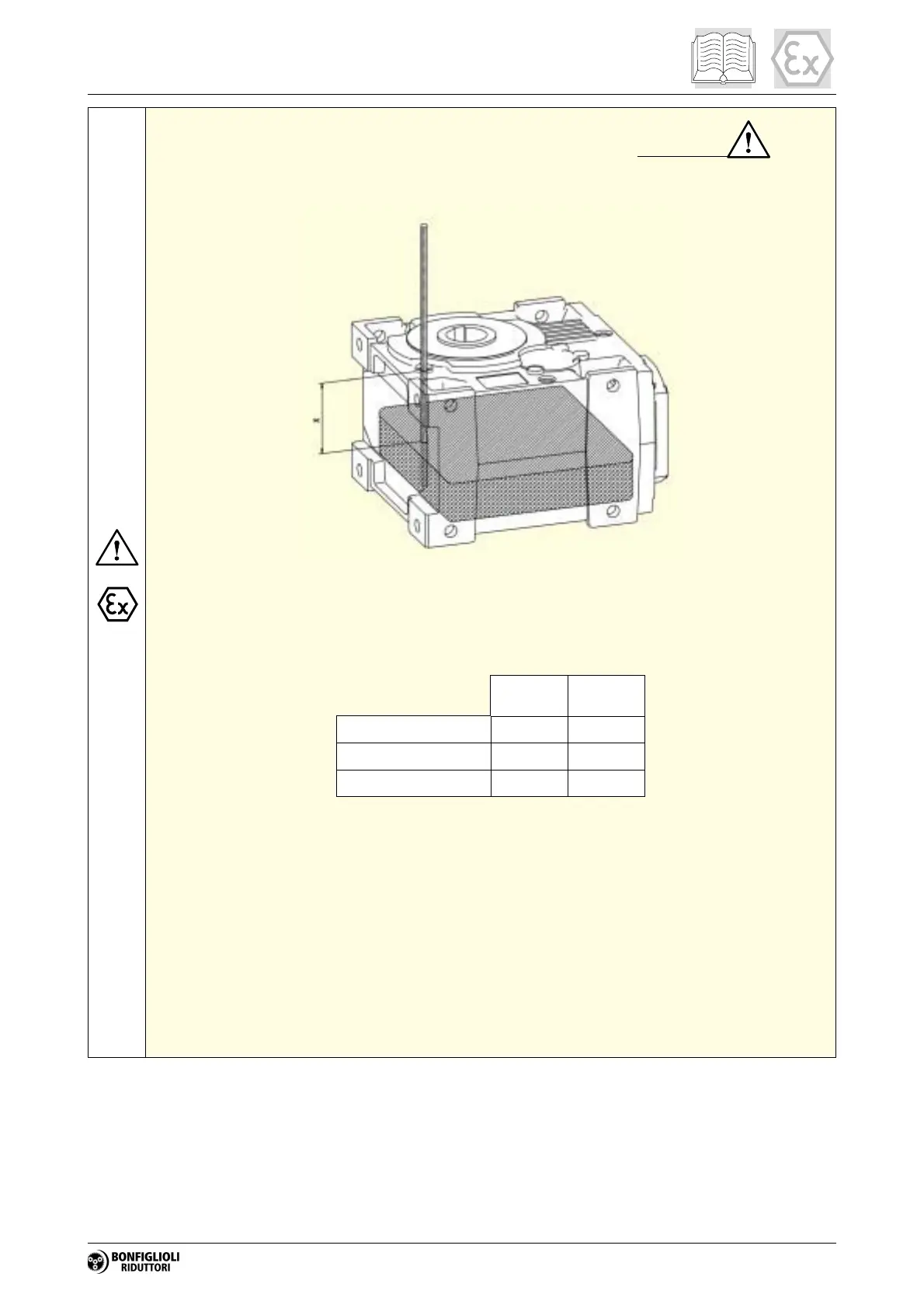2. Insert a dipstick through the yellow service cap (on top of the gear unit) until it touches the