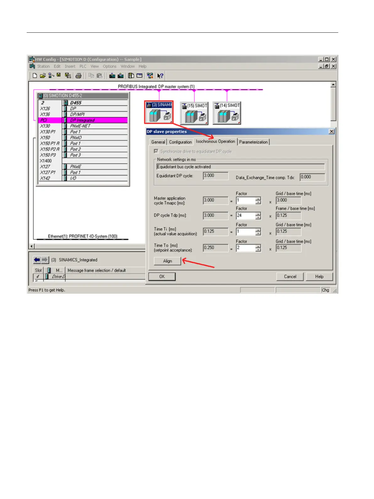 parameters for the isochronous PROFIBUS. The "Activate isochronous bus cycle" setting