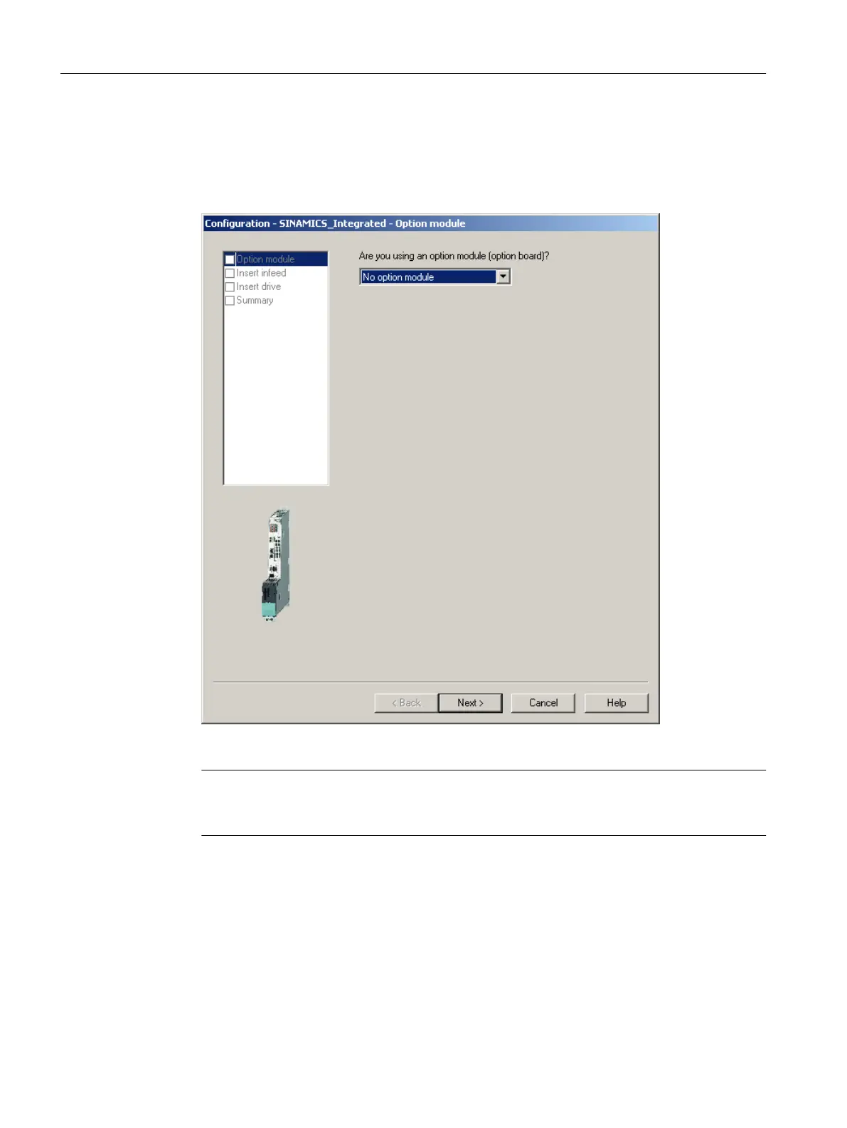 a DRIVE‑CLiQ connection. If the DC link has an external supply, select "No" (no