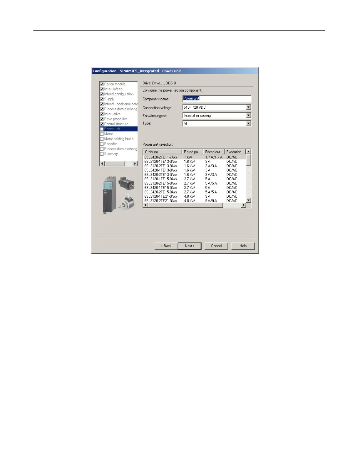 the "Power Unit" dialog box, use the article number to select your Motor Module from the