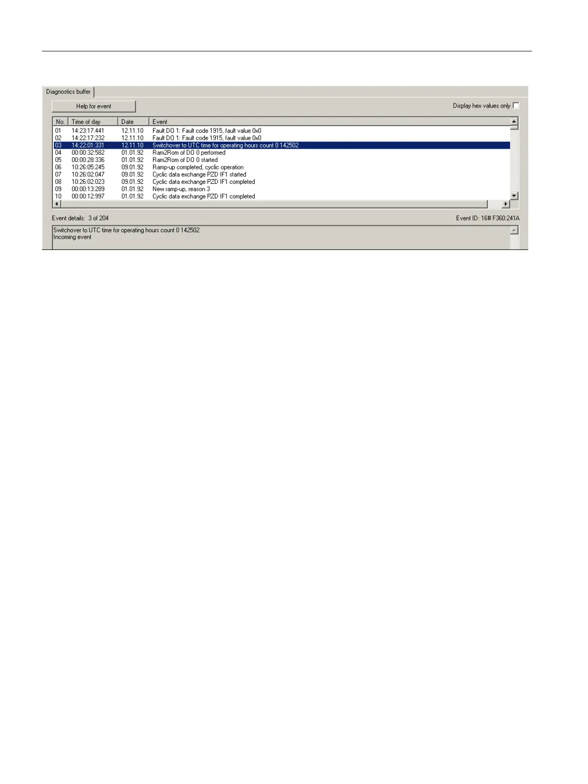 Adopting this procedure ensures that the sequence of SINAMICS diagnostic buffer entries