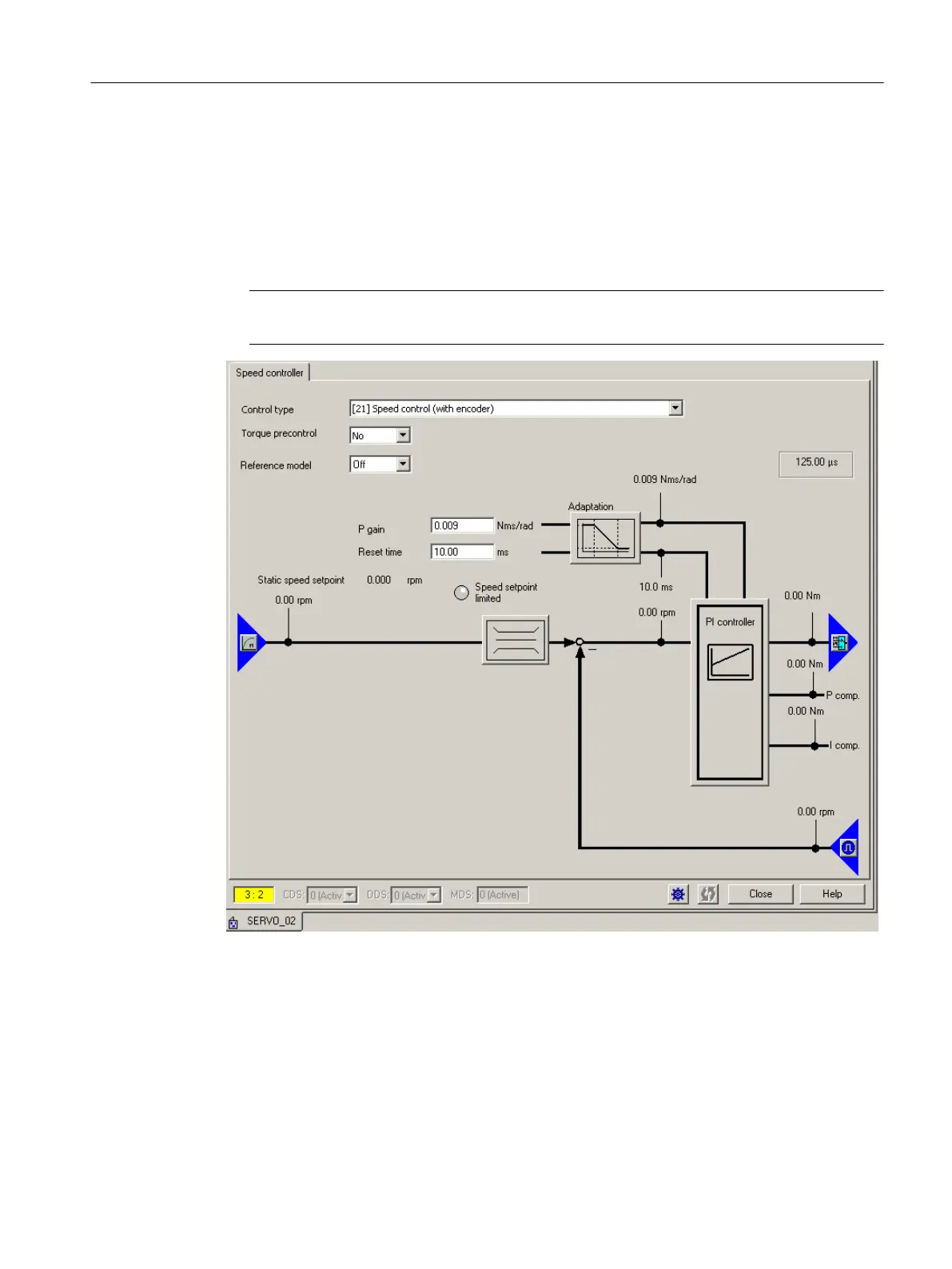 command "Open-loop/closed-loop control" > "Speed controller" to display the "Speed
