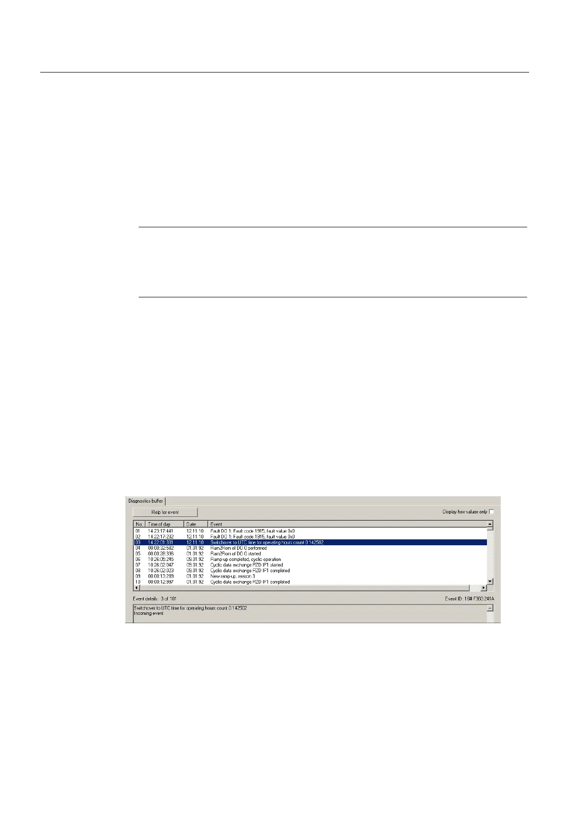 Figure 4-15 Diagnostics buffer entry, time synchronization