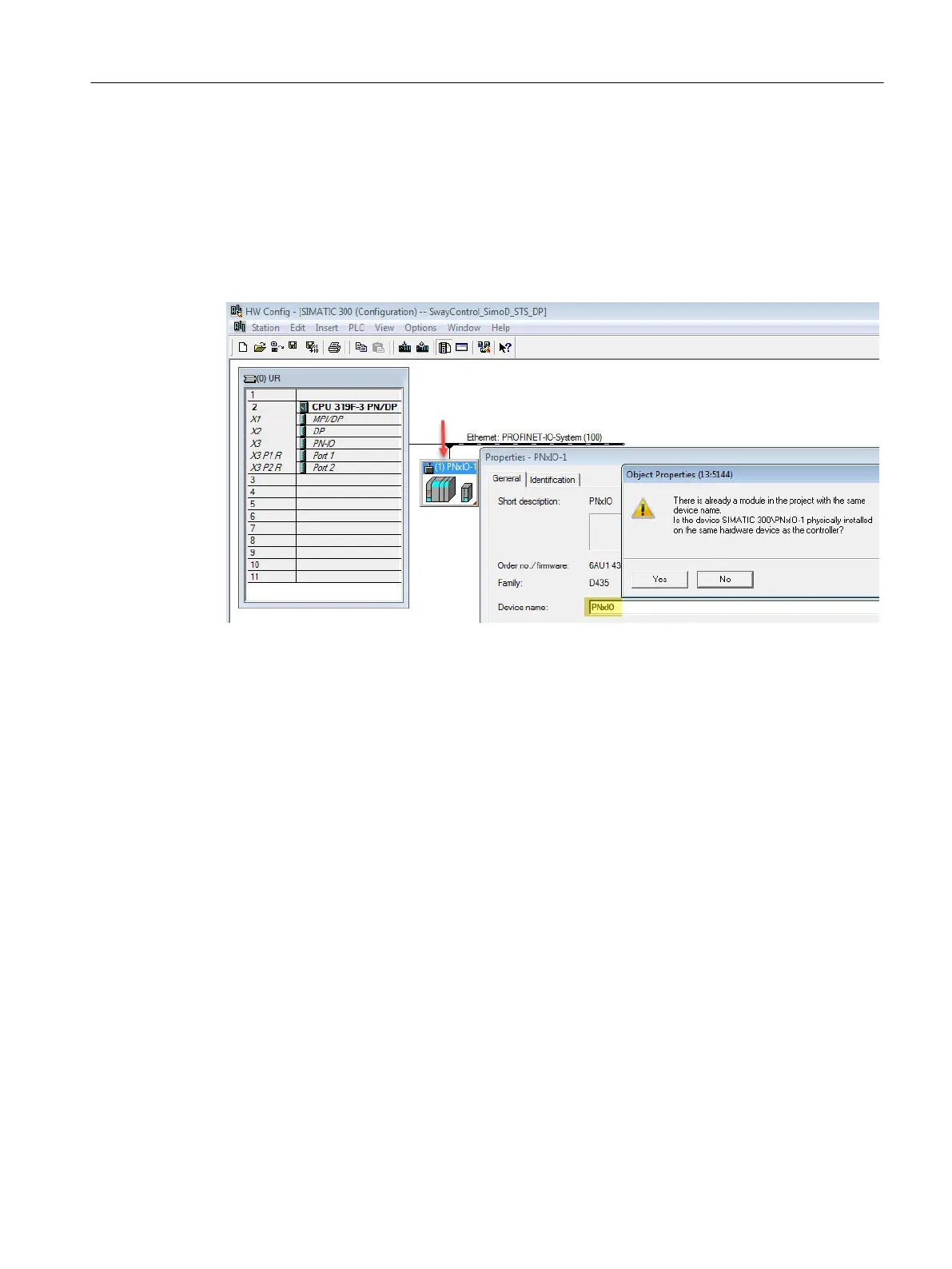 SIMOTION, i.e. also PNxIO. When you change the name, a window opens indicating that the