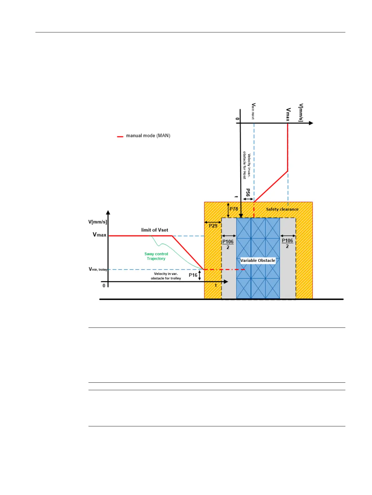 trolley is braked in good time before a blocked region and any oscillation is ignored. In this case,