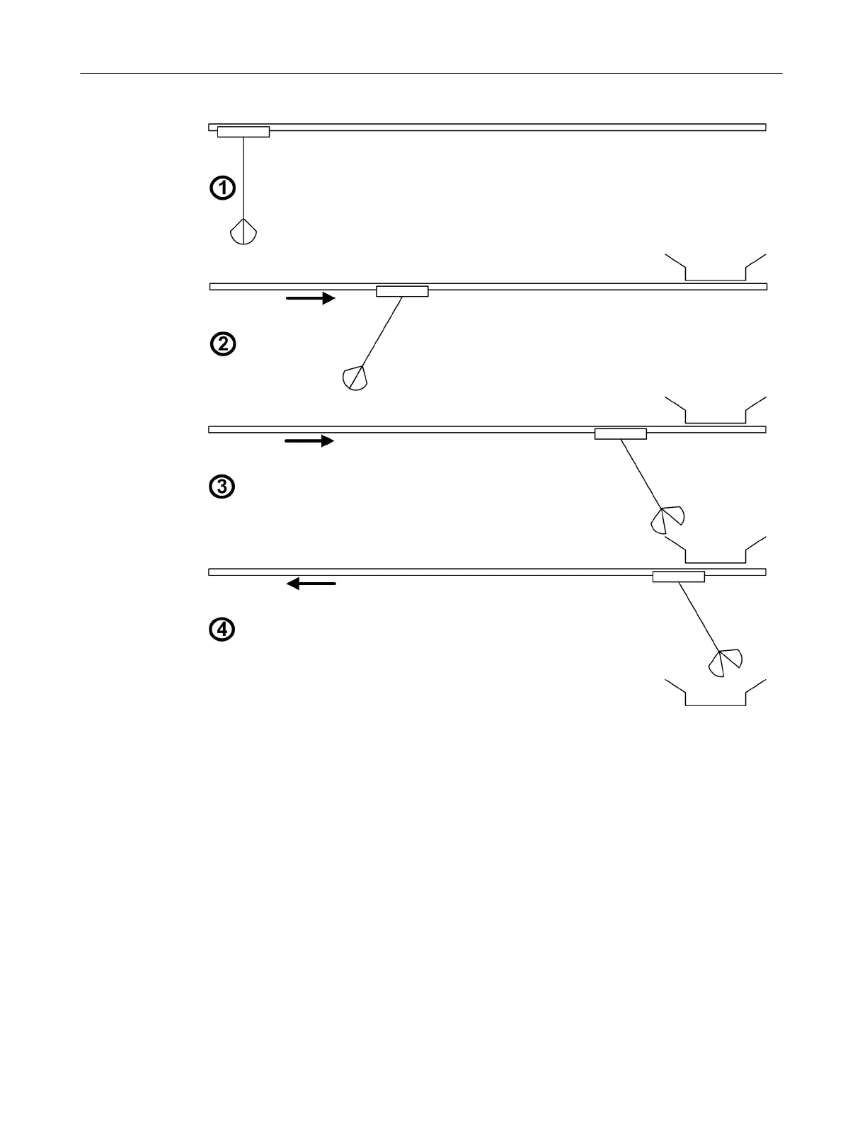 Because the trolley is in the deceleration phase, the grab sways forward. The signal to "open