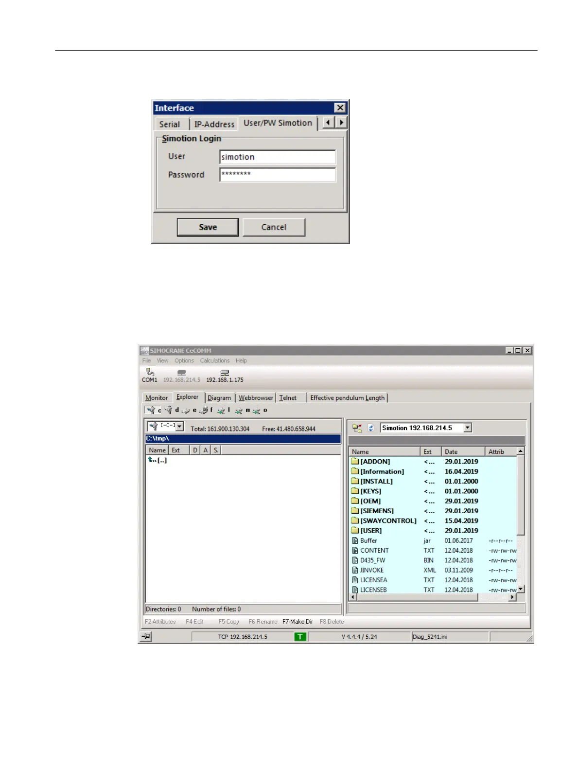 connection to the SIMOTION via SIMOCRANE CeCOMM and open the "File Manager" or