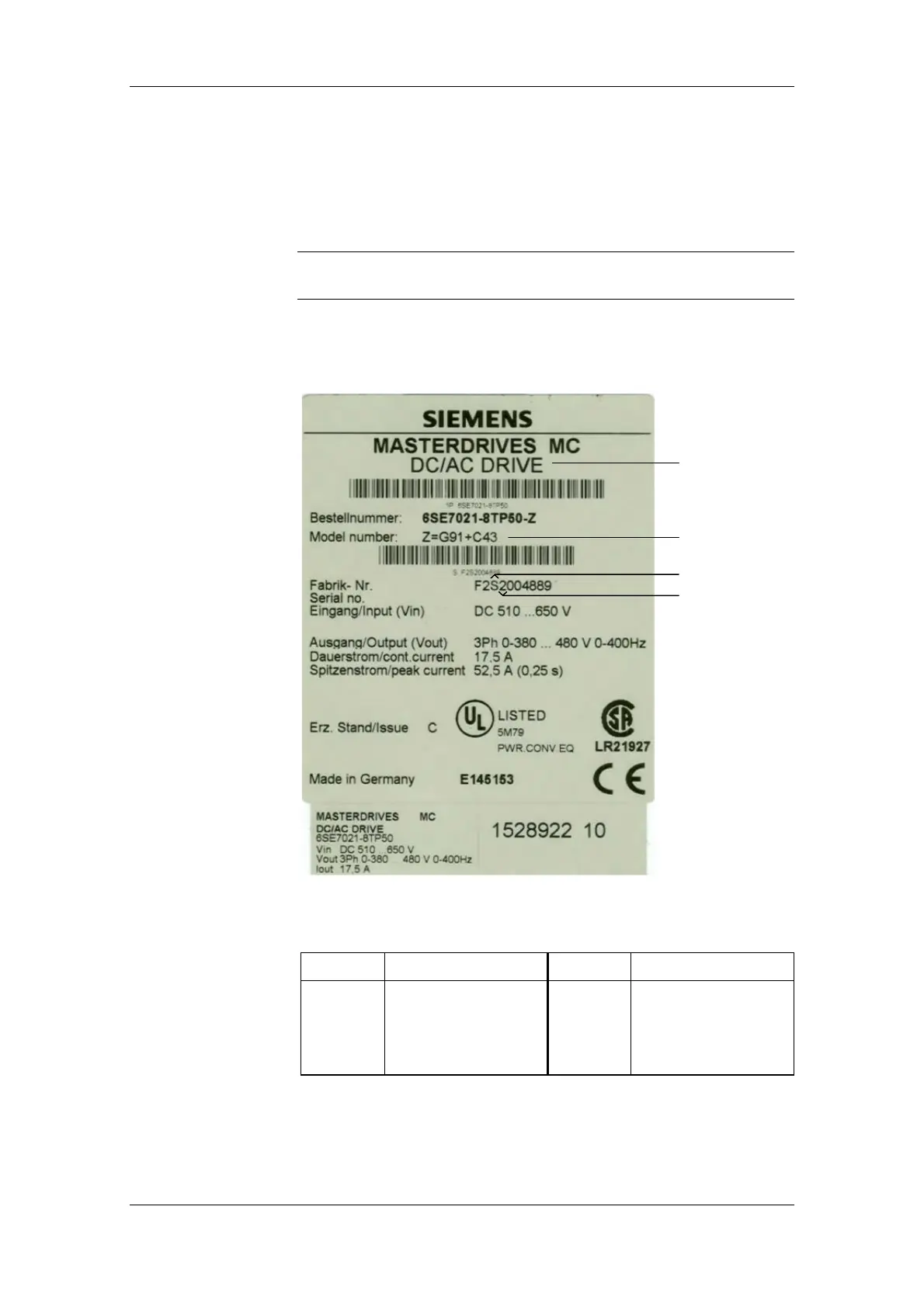 Bild 11-2 Beispiel Typenschild (gilt nur für Geräte <22 kW)