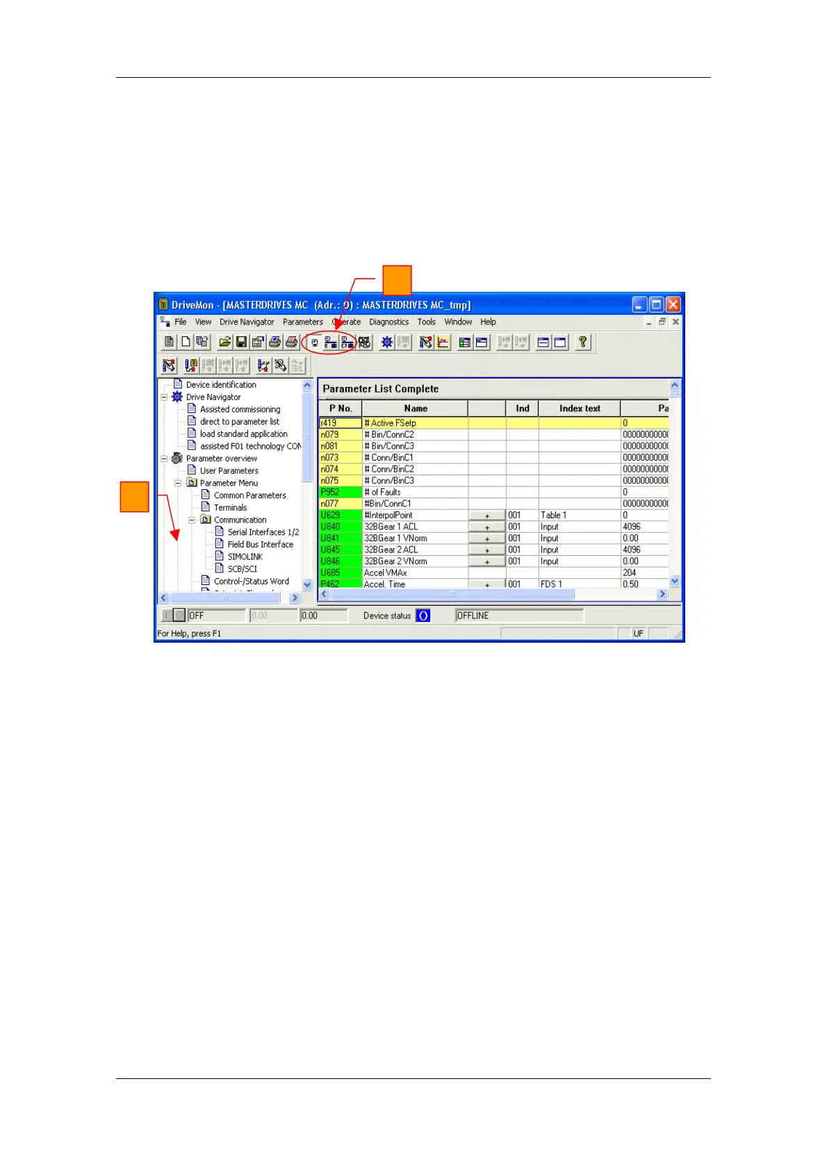 Fig. 8-12 Drive window/parameter list