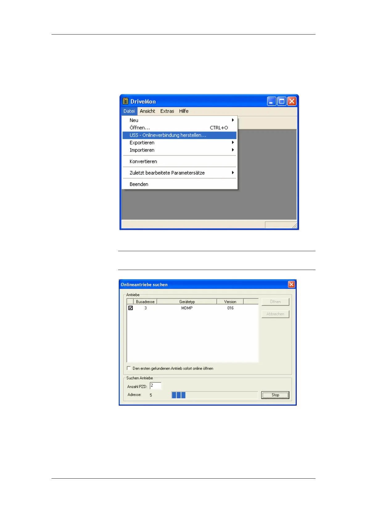 Das Menü "USS-Online-Verbindung herstellen" ist erst ab Version 5.2