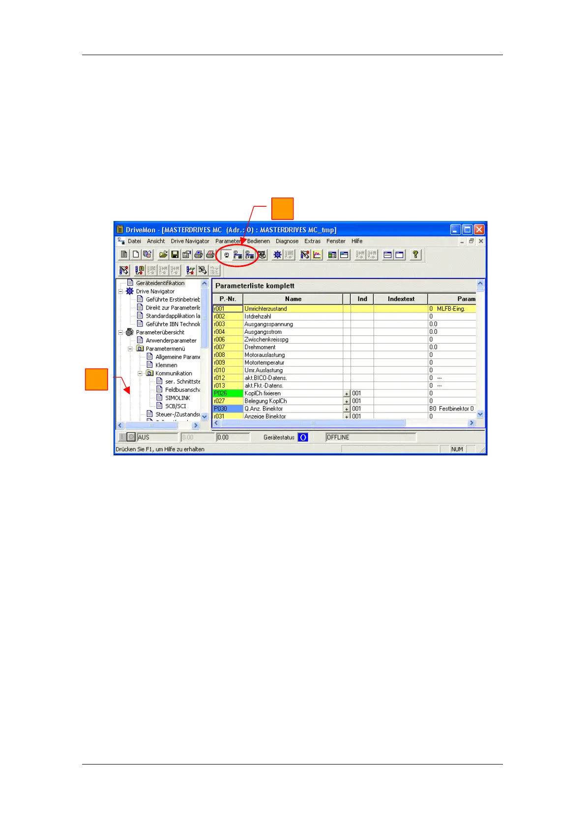 Über die Schaltflächen Offline, Online-RAM, Online-EEPROM (Bild