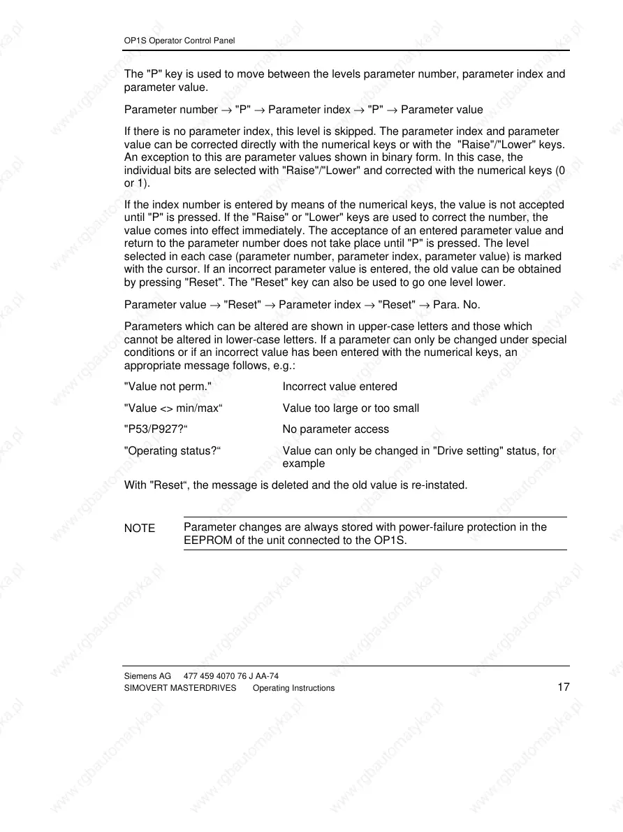 SIMOVERT MASTERDRIVES Operating Instructions 17