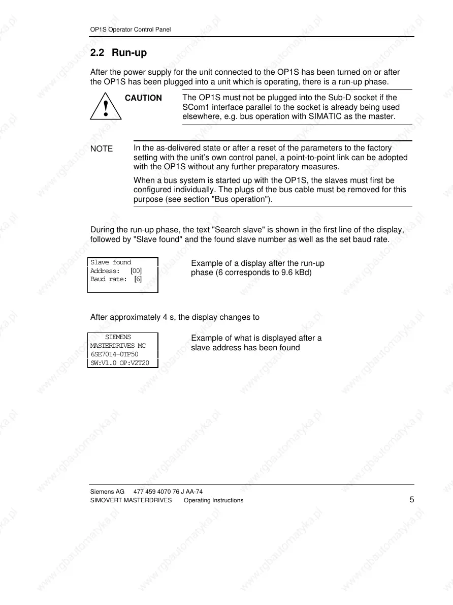 elsewhere, e.g. bus operation with SIMATIC as the master.