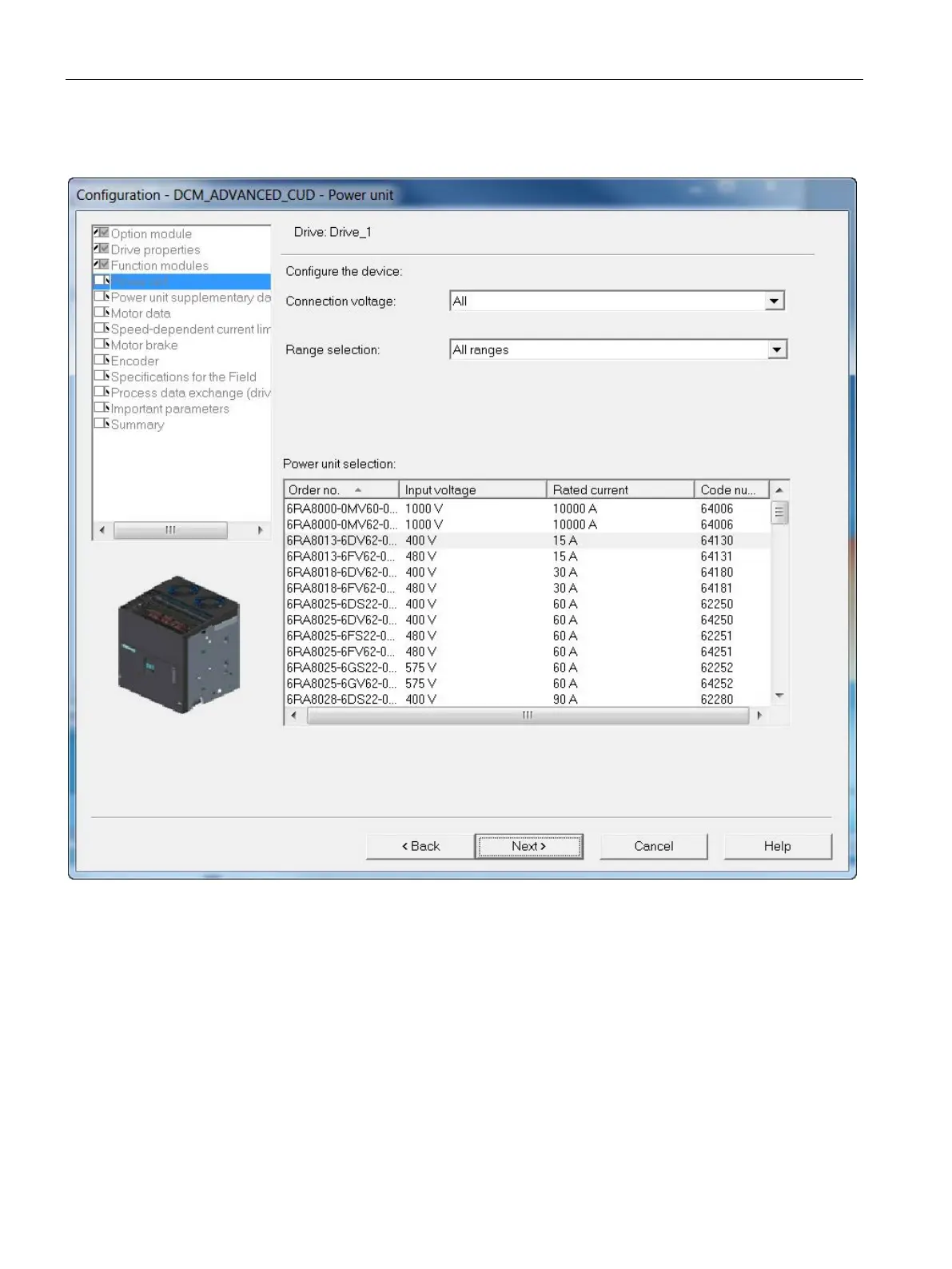 Figure 8-20 Selecting a power unit