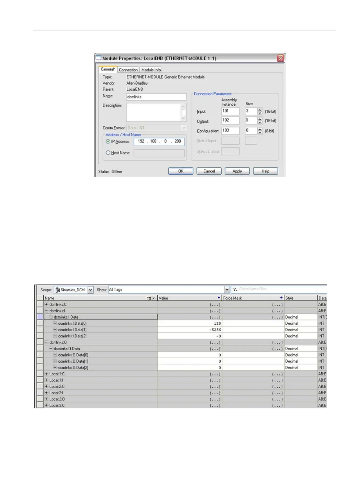 ● Set the "Connection Parameters" as described in Chapter "Implicit messaging – cyclic