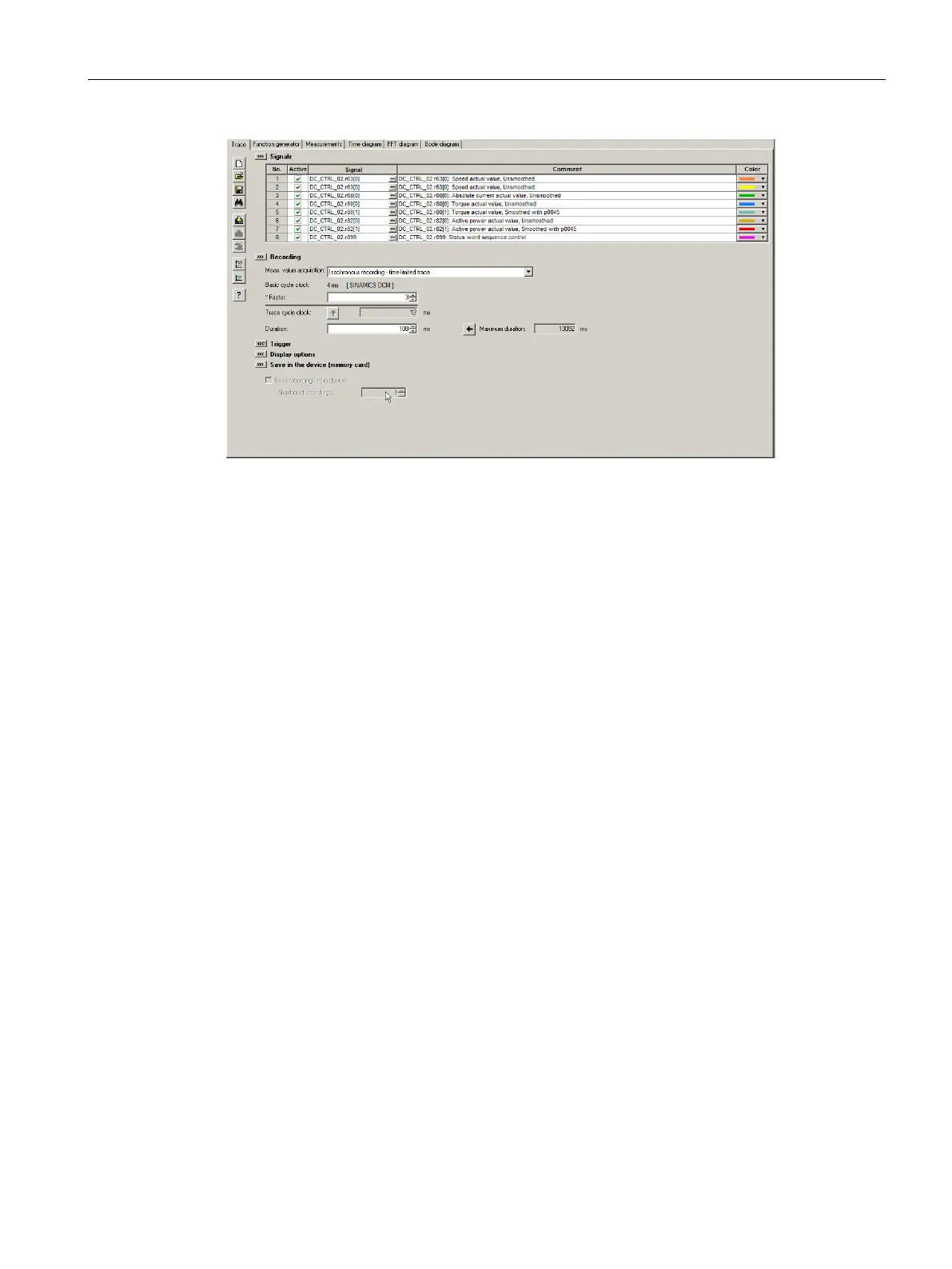 SINAMICS DCM is not influenced too strongly by the trace function.