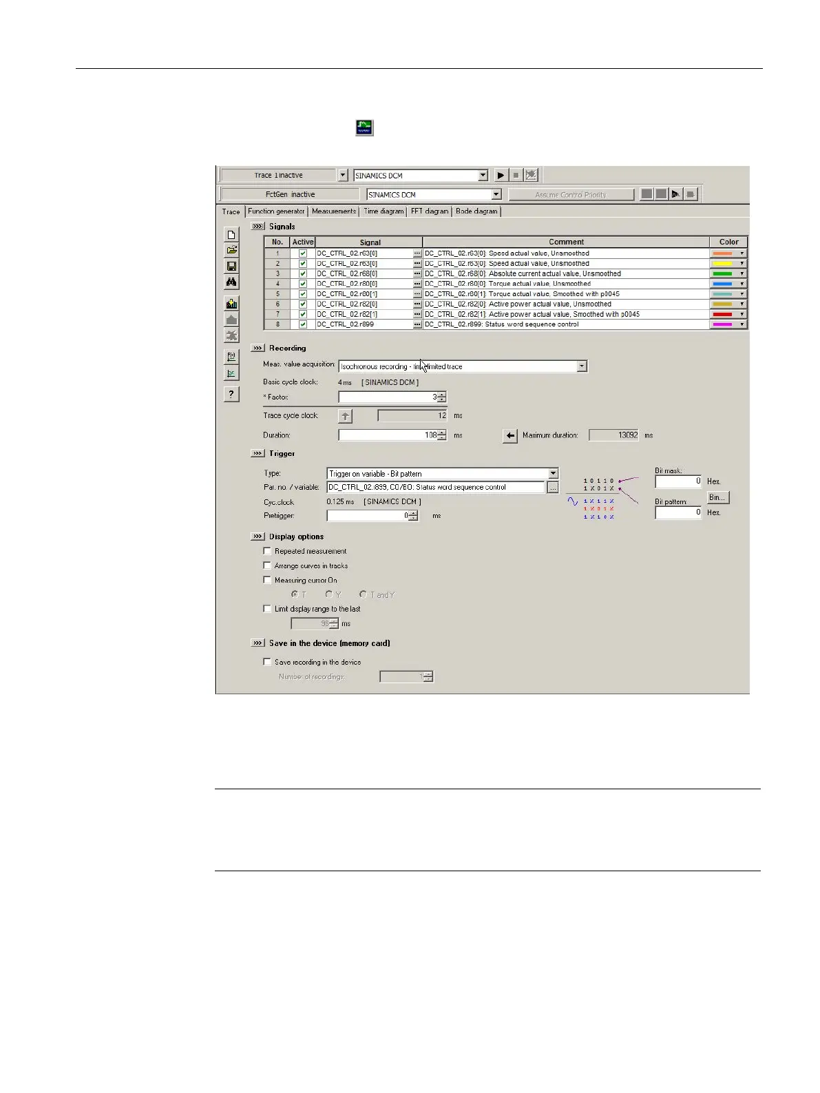1. In STARTER, click the symbol (device trace-function generator).