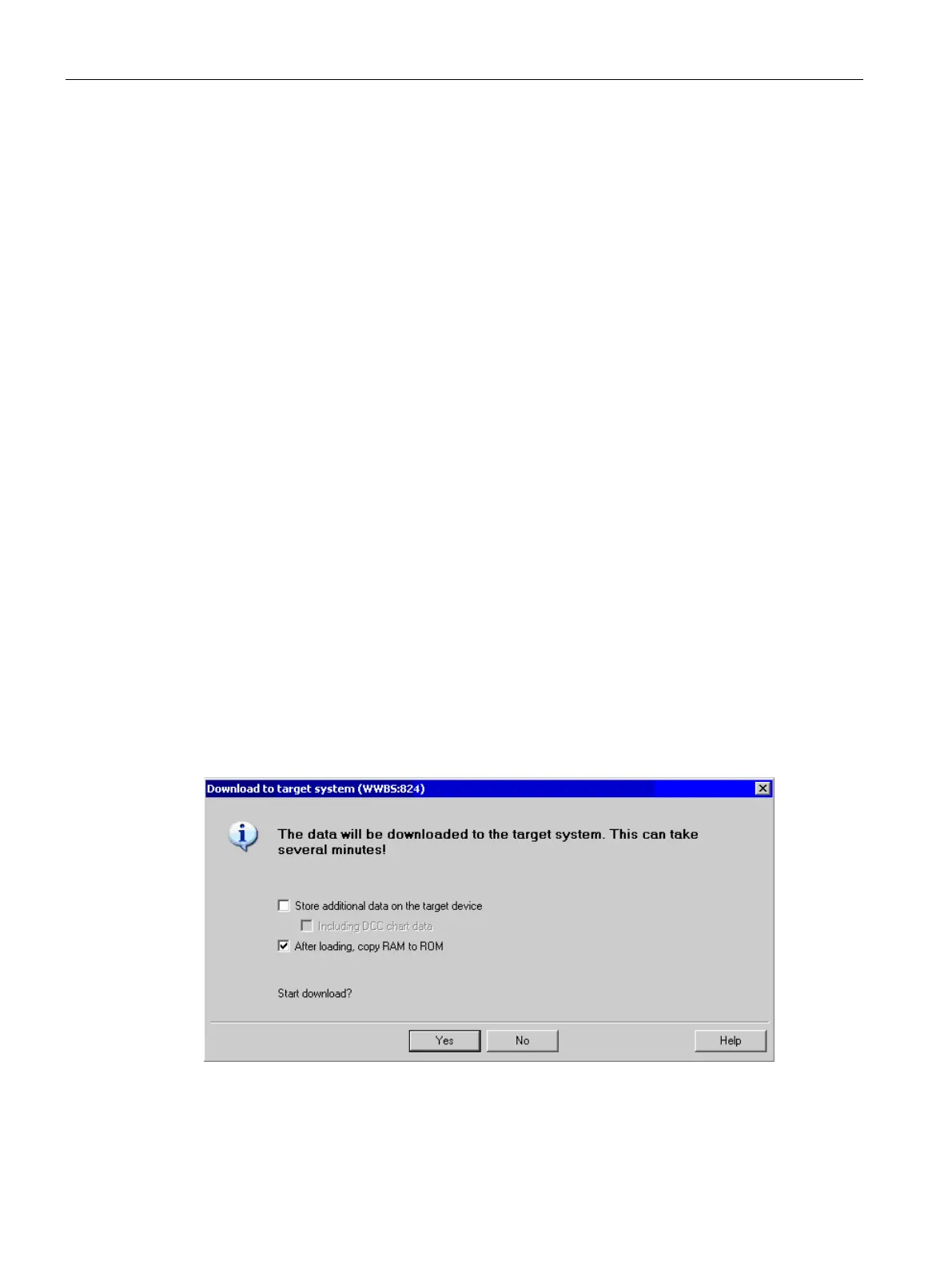 A further prompt appears after selecting the "Download to Target System" window. The DCC