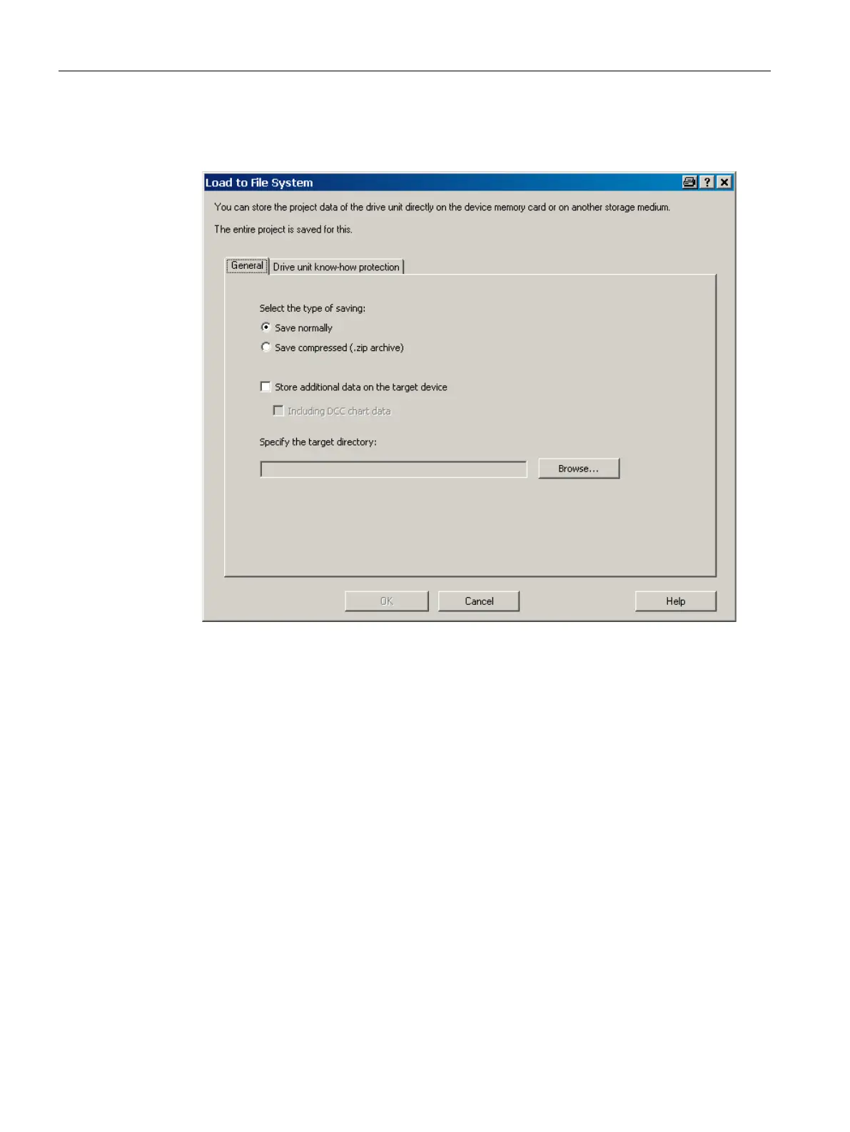 The "General" tab is displayed automatically when the dialog is called. The "Save normally"