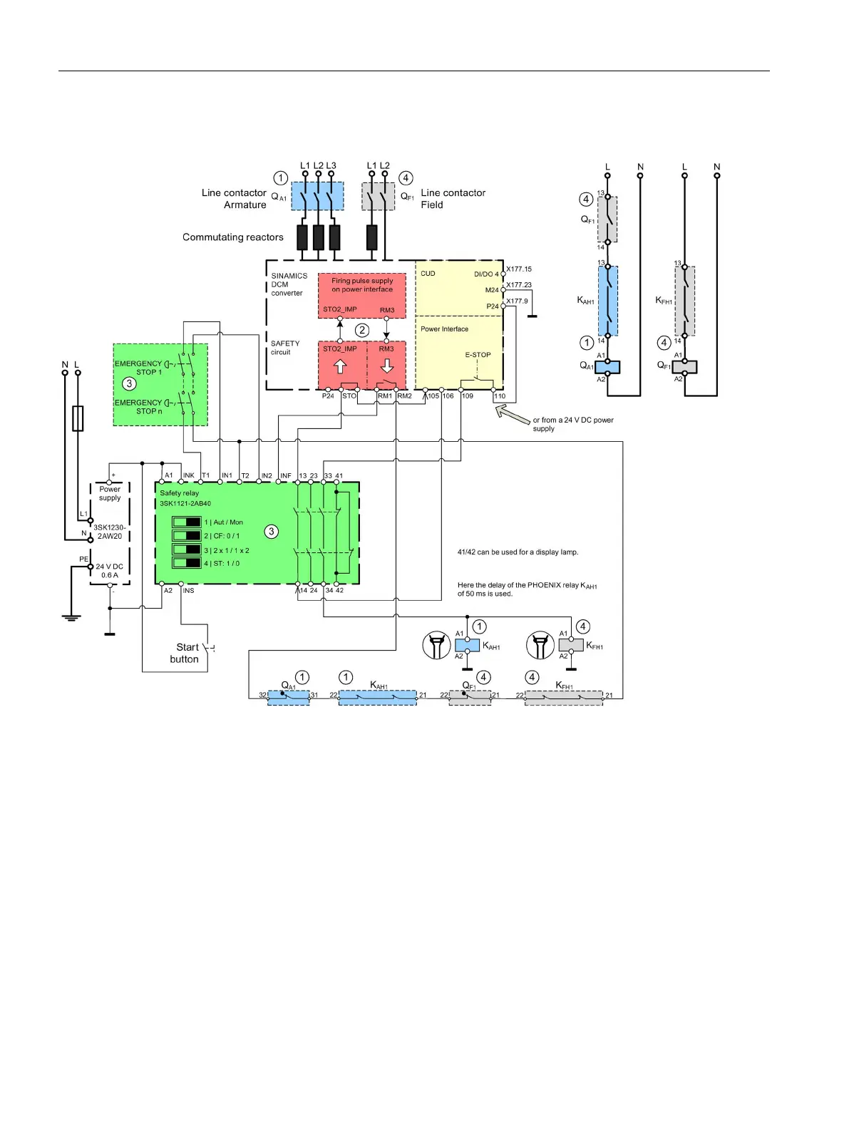 Contact blocks for field excitation (gray): Line contactor field + field auxiliary contactor (also as the field contactor is