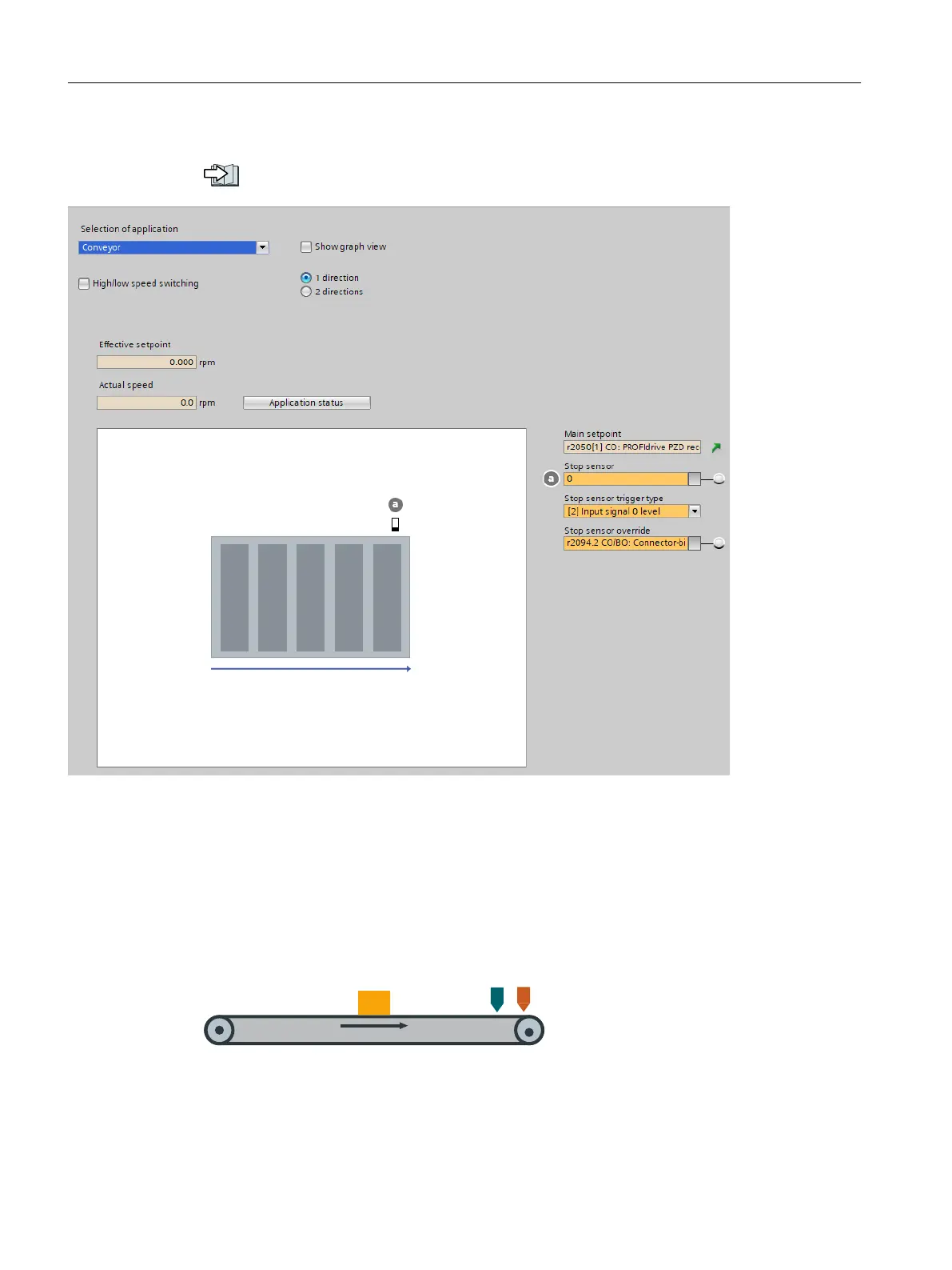 7.9.1.2 Conveyor, one direction and two speeds (p3393 = 2)