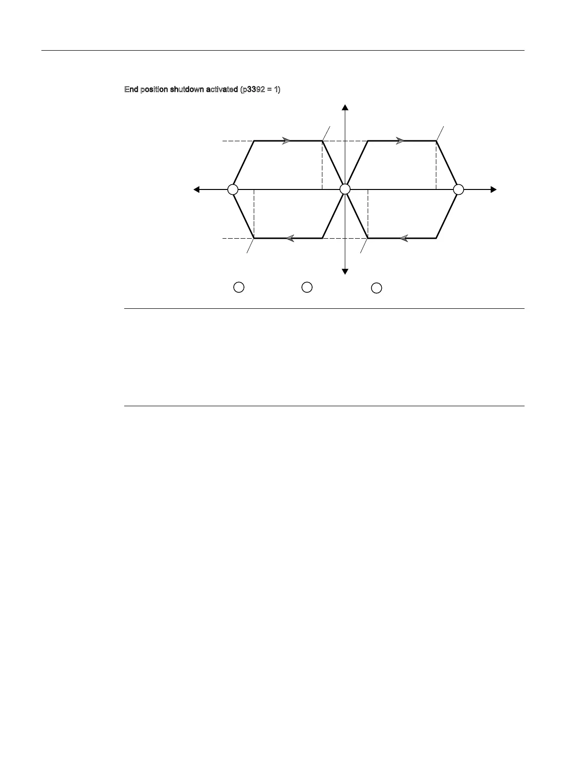 The motor will have the following behavior with the end position shutdown (p3392 = 1) and