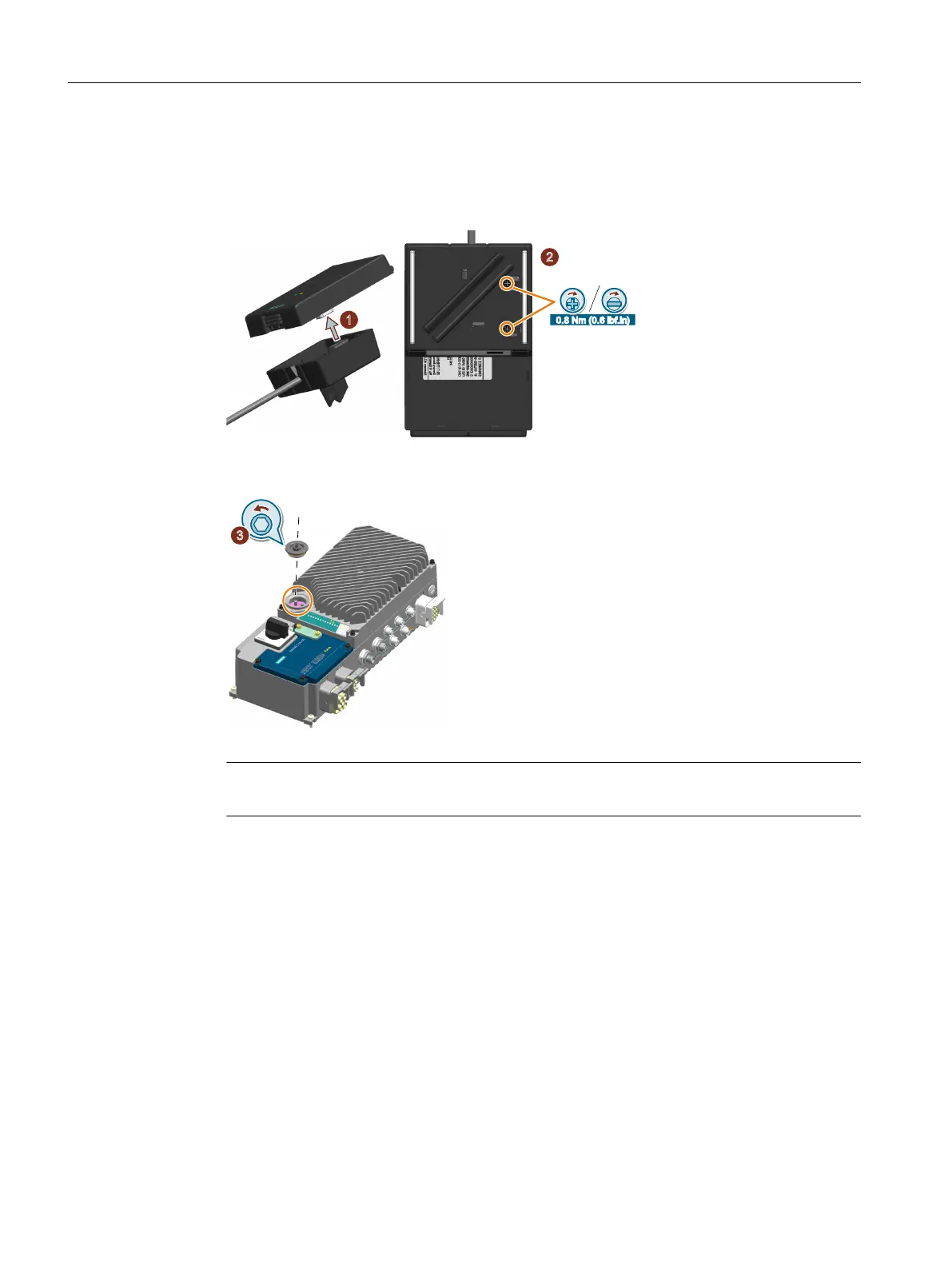 Reattach the commissioning cover with a tightening torque of 2.5 Nm (22.1 lbf.in).