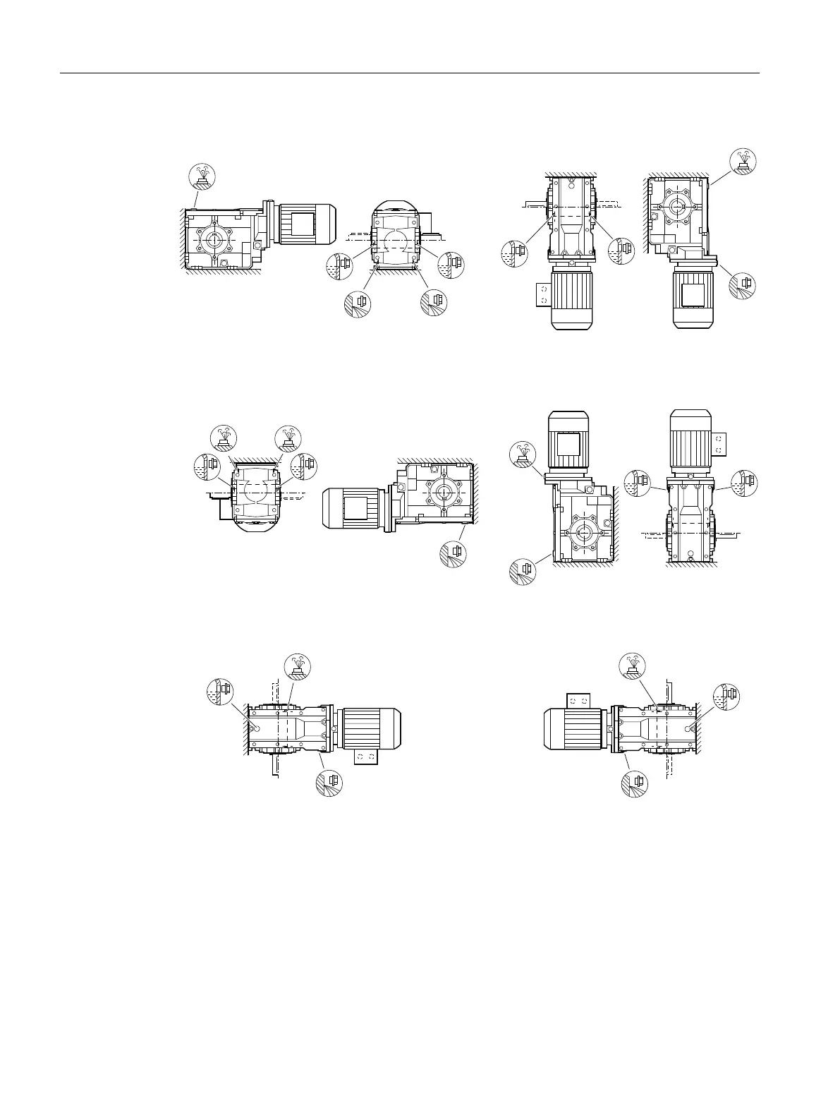 Figure12-52 Mounting positions for bevel gearbox B. foot-mounted design, frame sizes39-49