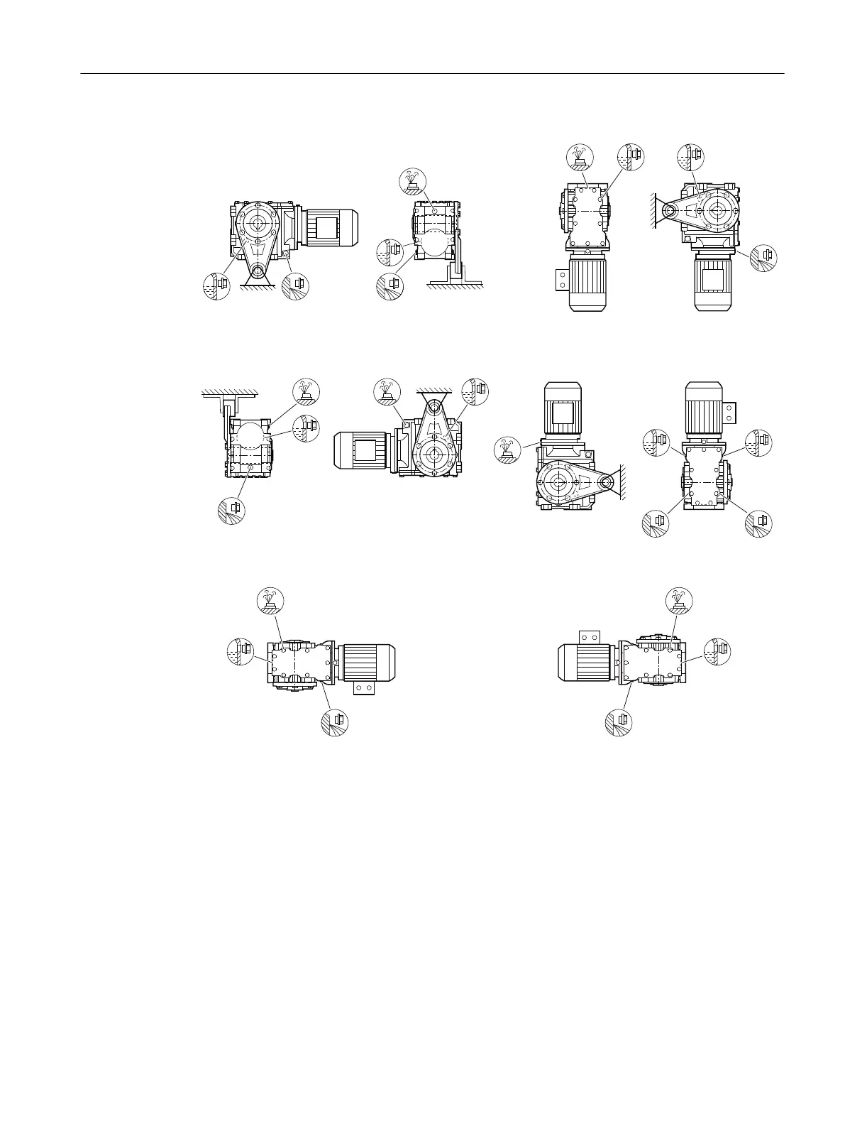 Figure12-61 Mounting positions for helical worm gearbox CAD shaft-mounted design, size39A