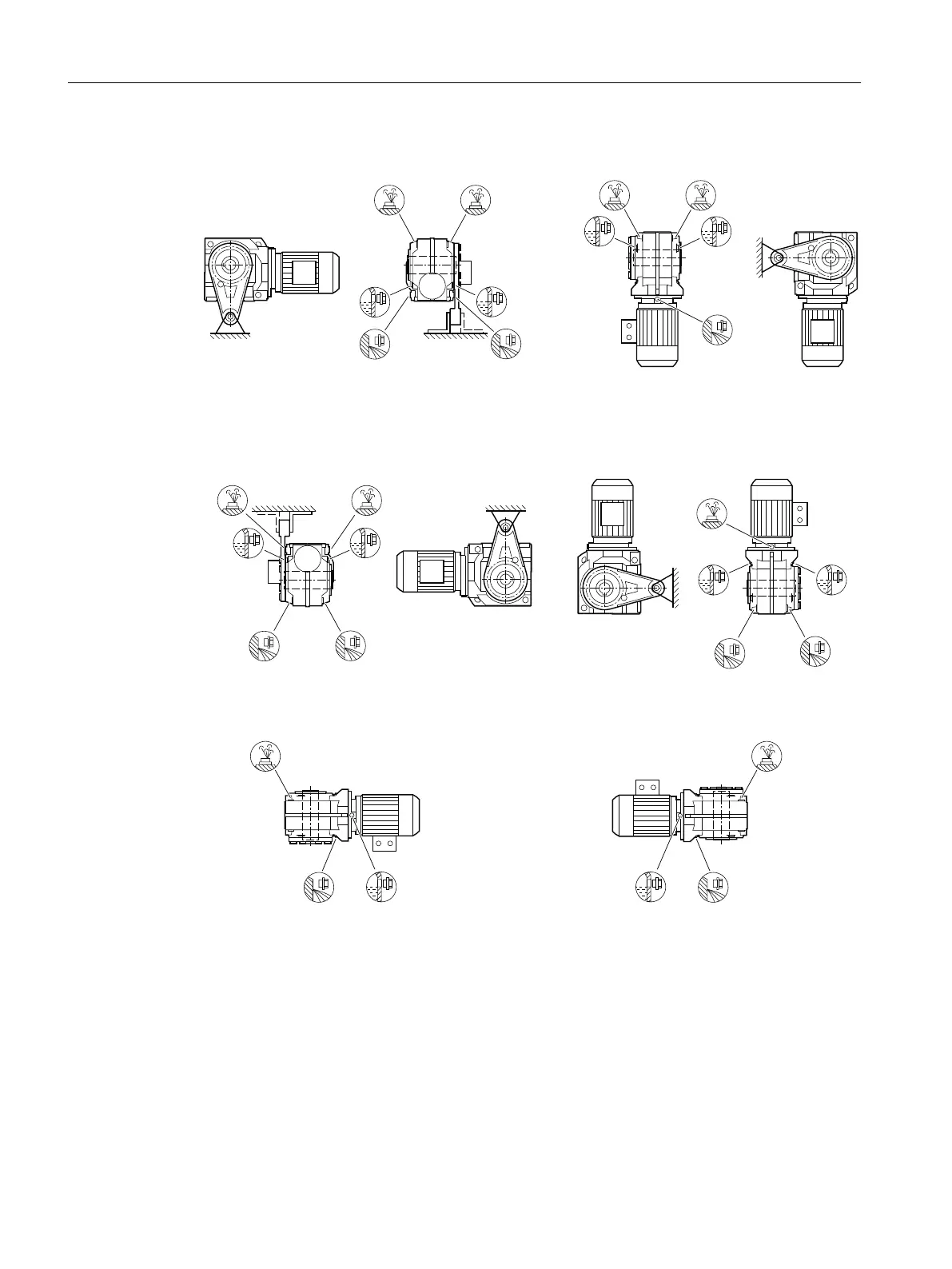 Figure12-62 Mounting positions for helical worm gearbox CAD shaft-mounted design, sizes39 - 89