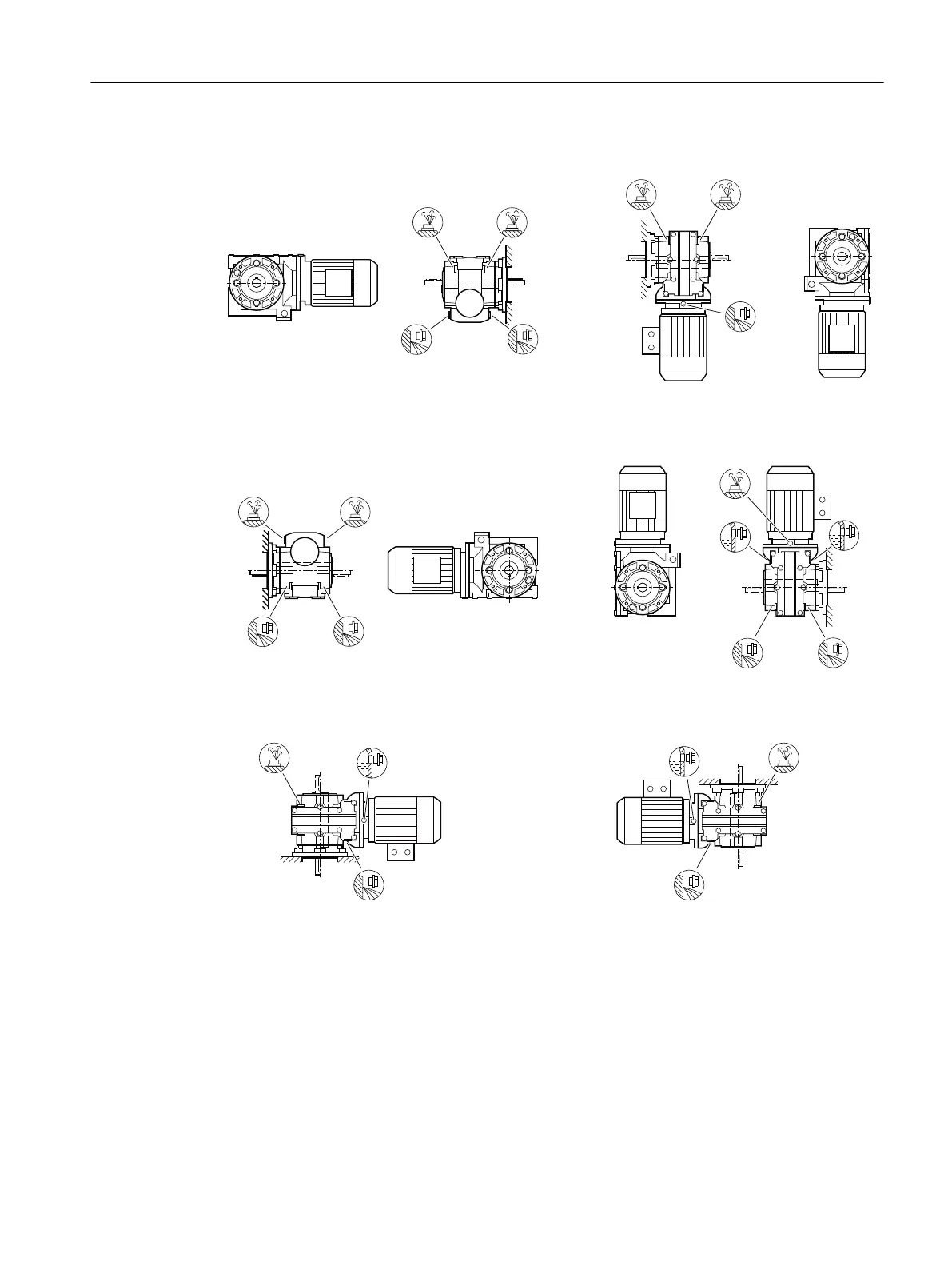 Figure12-63 Mounting positions for helical worm gearbox CF ange-mounted design and CAZ