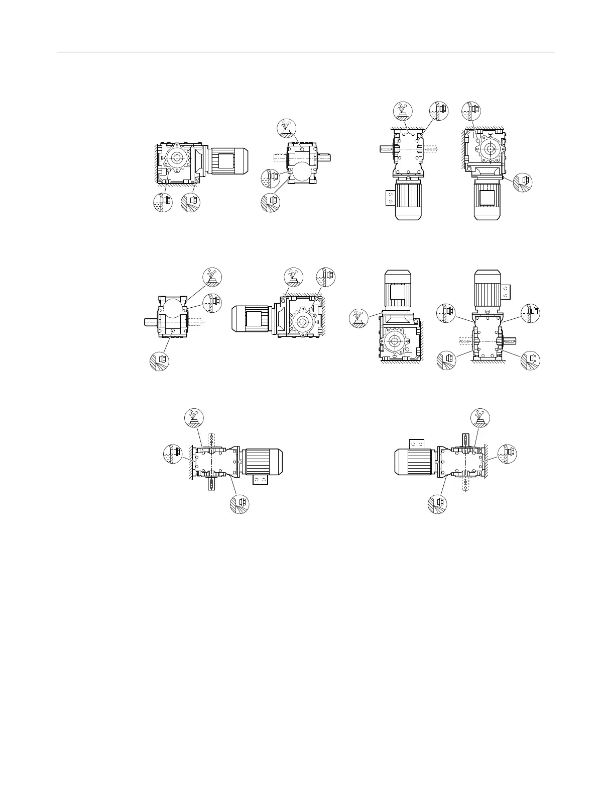 Figure12-67 Mounting positions for helical worm gearbox C. foot-mounted design, size39A