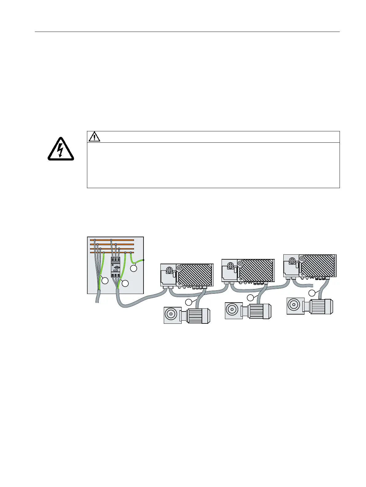 The minimum cross-section of the protective conductor ① … ③ depends on the cross-