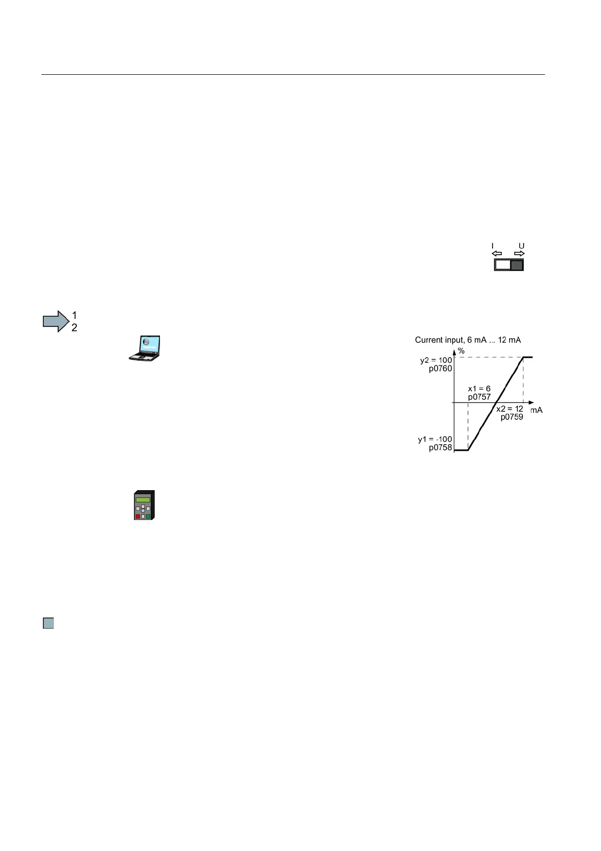 The inverter should convert a 6 mA … 12 mA signal into the value range -100% … 100% via