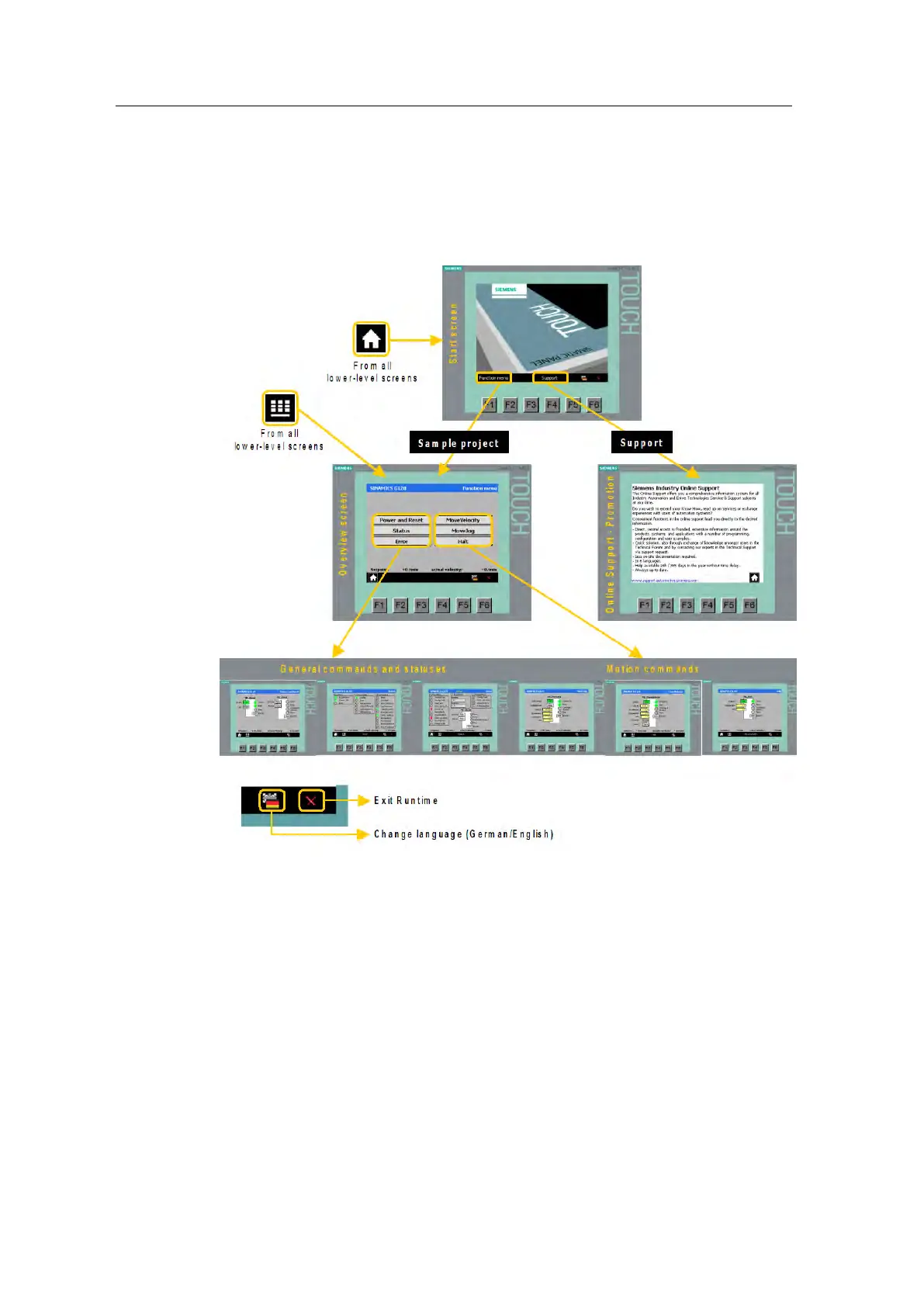 Siemens SINAMICS G120 - Operation of the Application with a Panel; Screens and Screen Navigation