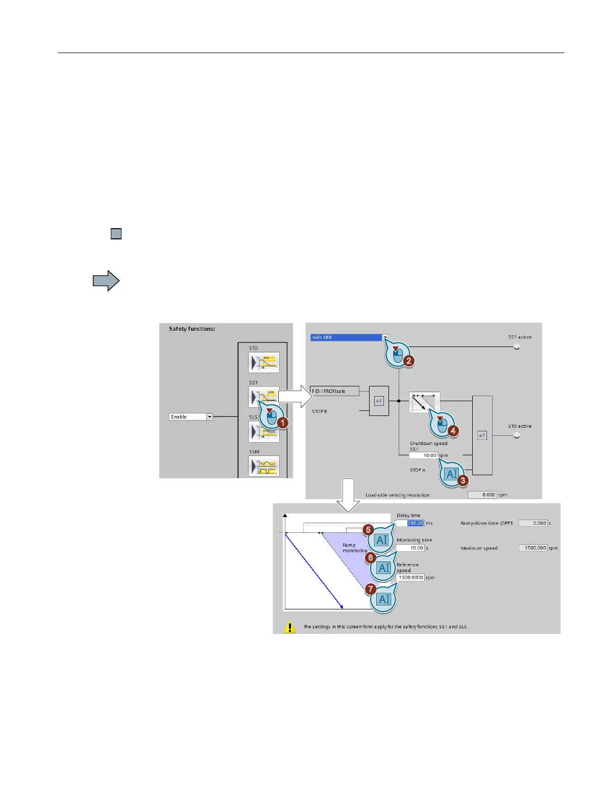 3. The shutdown speed SS1 is a condition for the transition into the STO function.