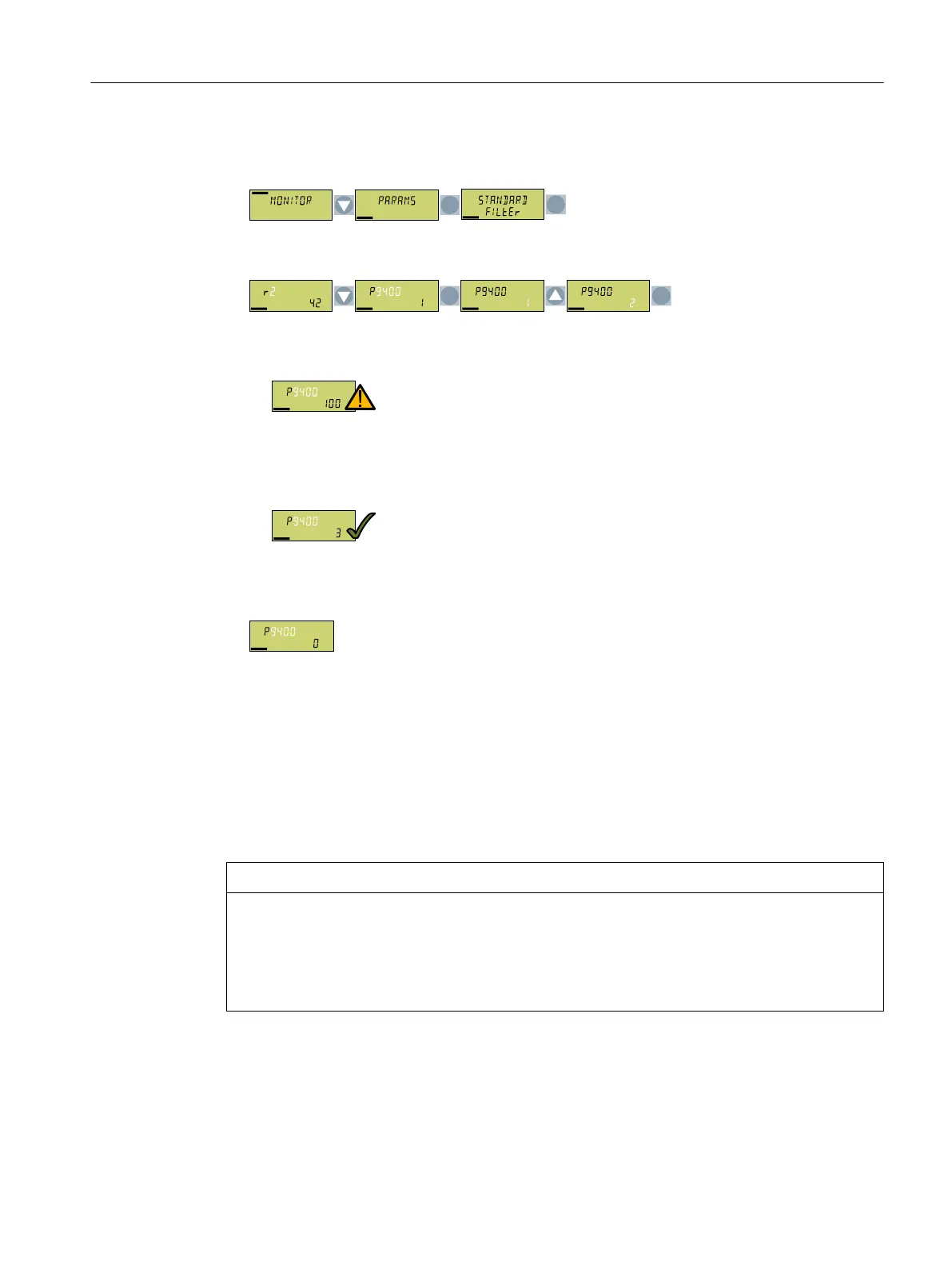 4. After removing the memory card, the converter sets p9400=0.