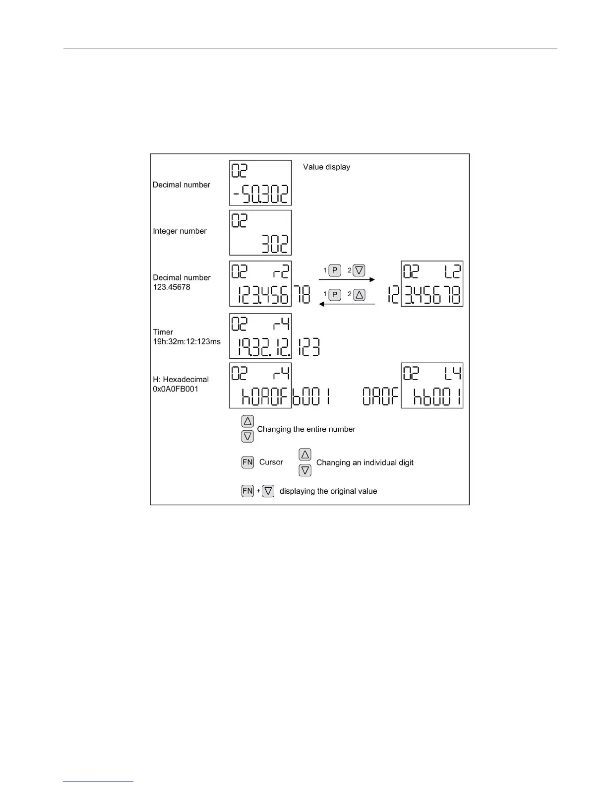 To switch from the parameter display to the value display, press the "P" key. In the value