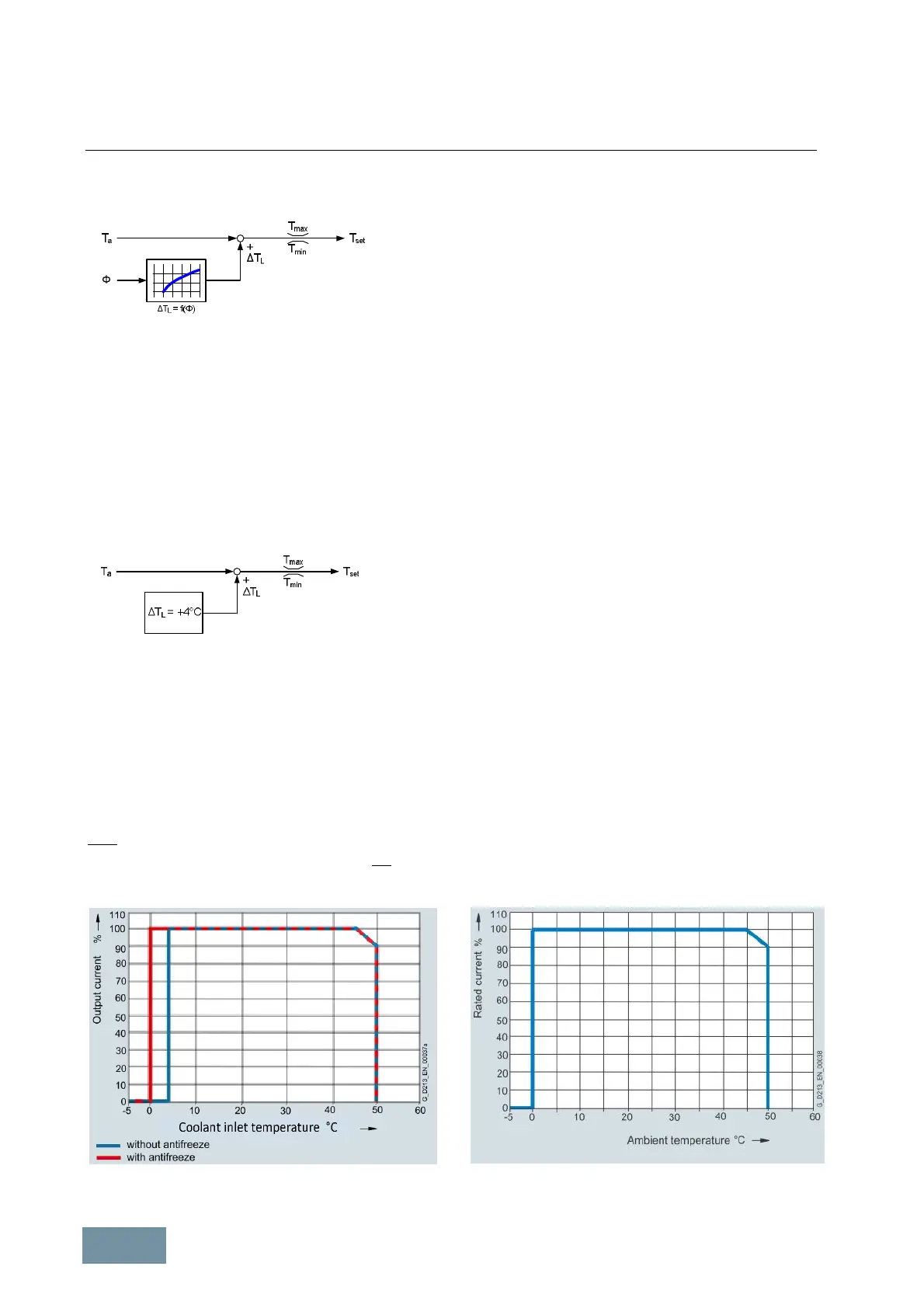 Current derating as a function of coolant inlet temperature Current derating as a function of ambient temperature