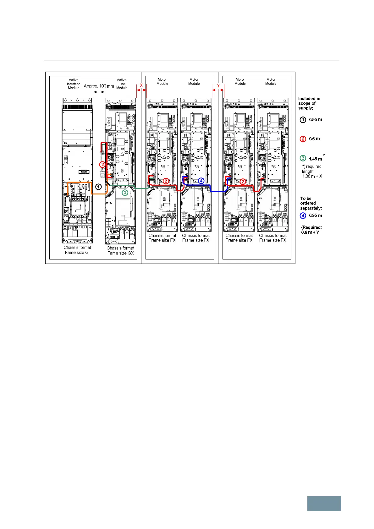 The 0.95 m DRIVE-CLiQ cable can also be used to link Motor Modules of different frame sizes, i.e. FX and GX