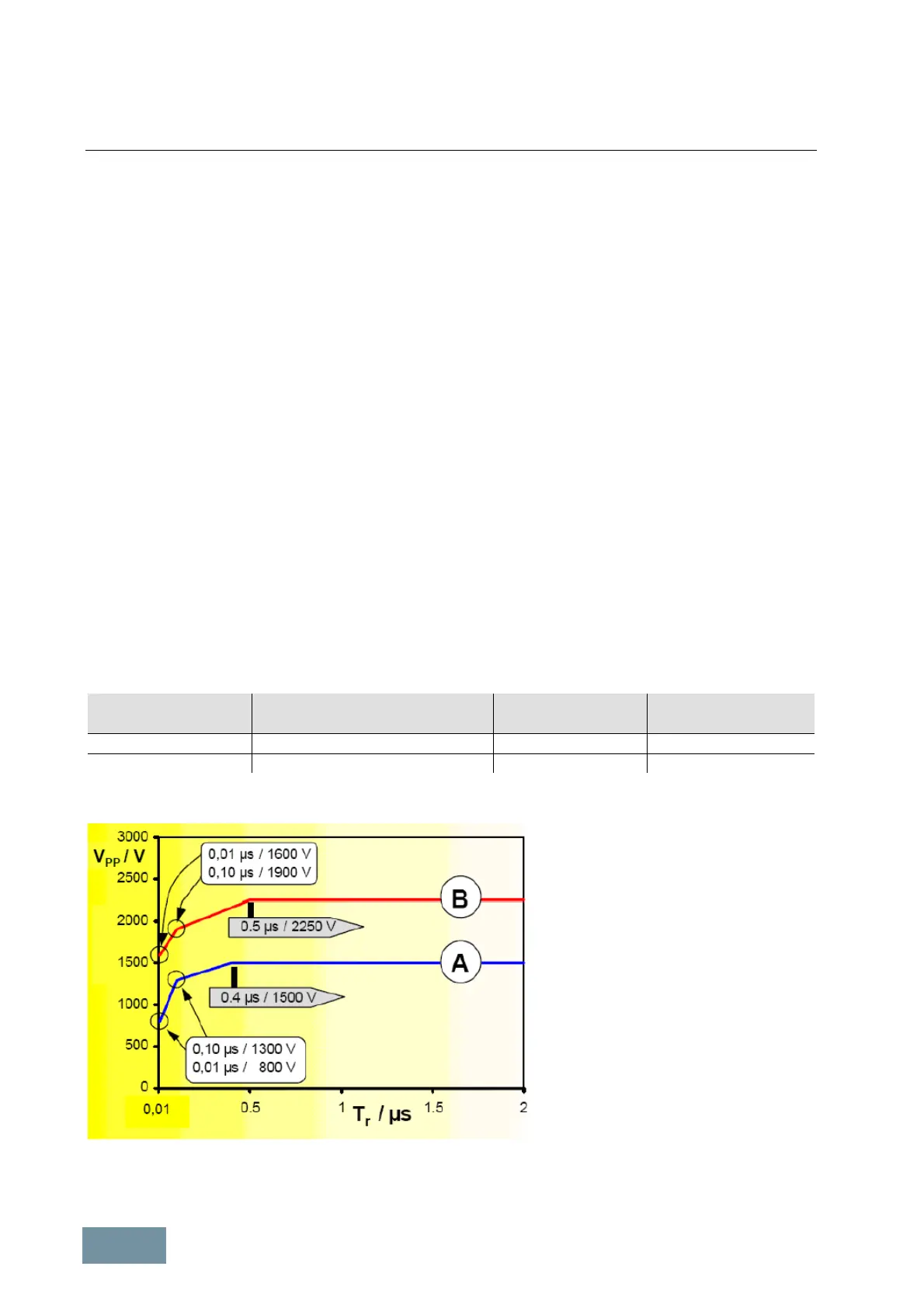 A = standard insulation ≤ 500 V 1500 V 1100 V