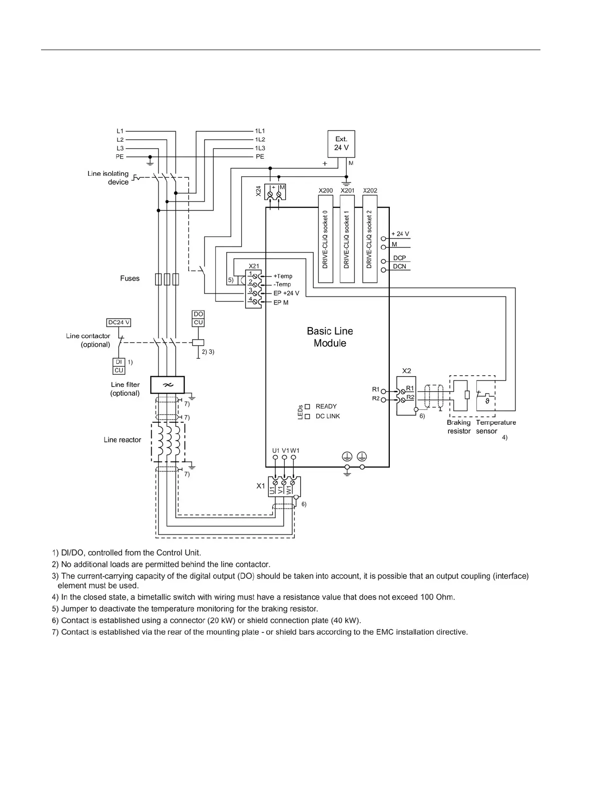 Figure 4-41 Connection example: Basic Line Module (20 kW and 40 kW)